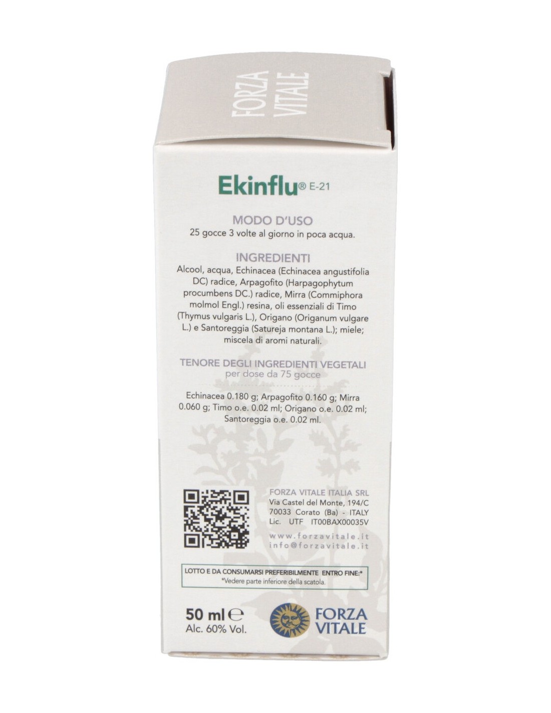 Equinacea 0.180 g: Harpagofito 0.160 g: Mirra 0.060 g: Tomillo a.e. 0.02 ml: Orégano 0.02 ml: Ajedrea a.e. 0.02 ml.