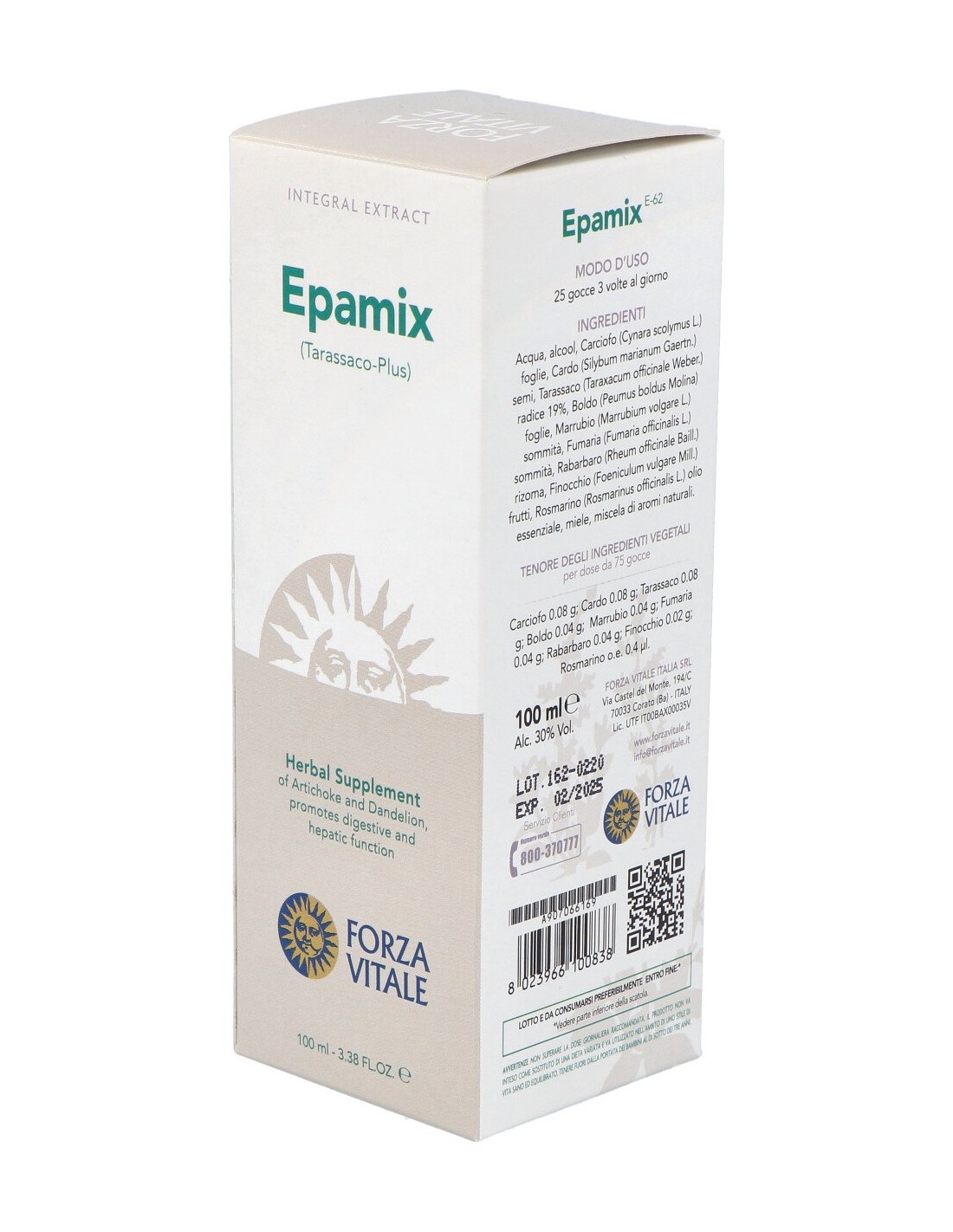 Agua, Alcohol, Alcachofera (Cynara scolymus) hojas, Cardo (Silybum marianum) semillas, Diente de león (Taraxacum officinale) raíz 19%, Boldo (Peumus boldus) hojas, Marrubio (Marrubium vulgare) sumidades, Fumaria (Fumaria officinalis) sumidades, Ruibarbo (Rheum officinale) raíz, Hinojo (Foeniculum vulgare) frutos, Romero (Rosmarinus officinalis) aceite esencial, miel, mezcla de aromas naturales.