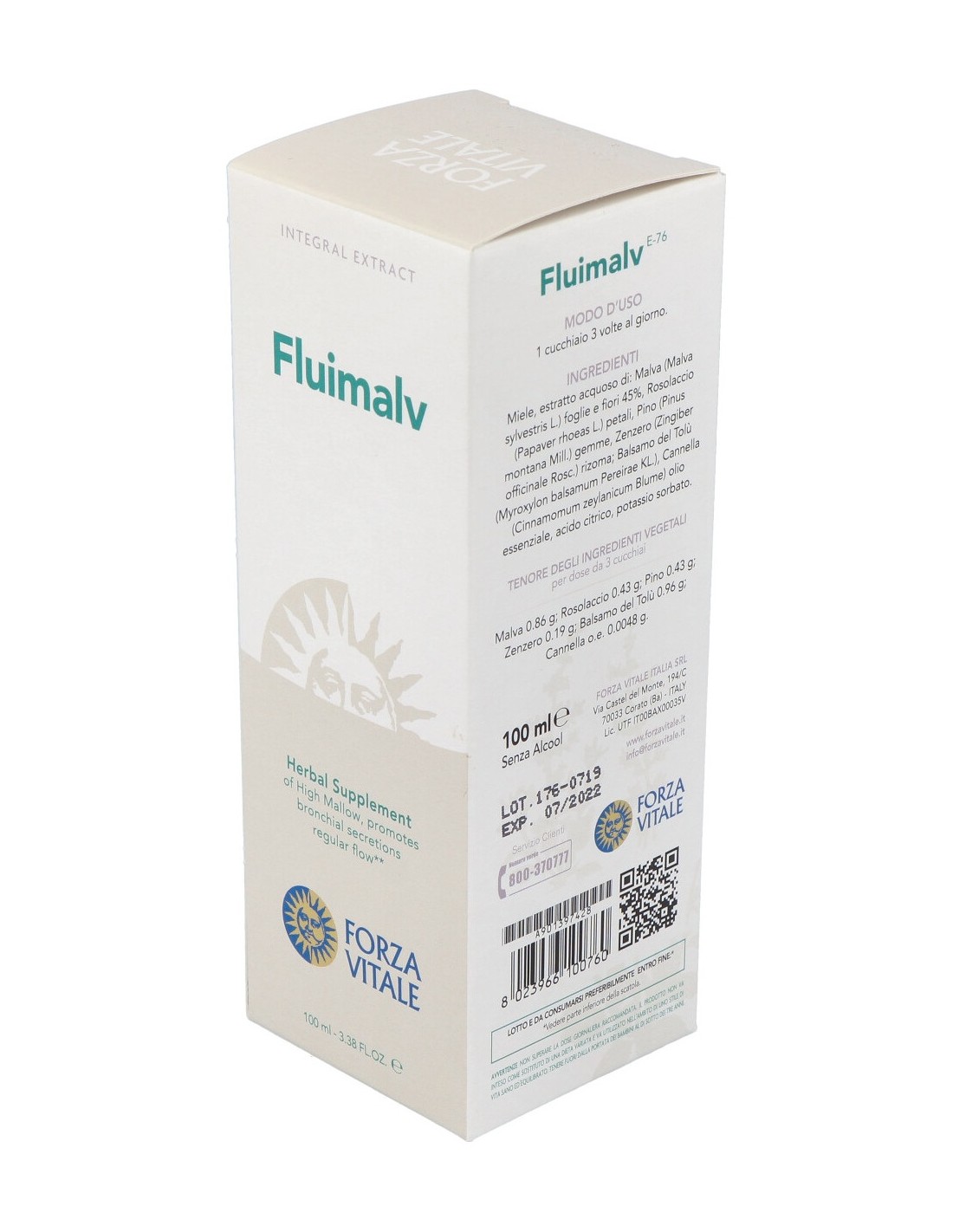 Miel, extracto acuoso de: Malva (Malva sylvestris) hojas y flores 45%, Amapola (Papaver rhoeas) petalos, Pino (Pinus montana) yemas, Jengibre (Zingiber officinale) raíz: Bálsamo de Tolú (Myroxylon balsamum), Canela (Cinnamomum zeylanicum) aceite esencial, ácido cítrico, potasio sorbato.