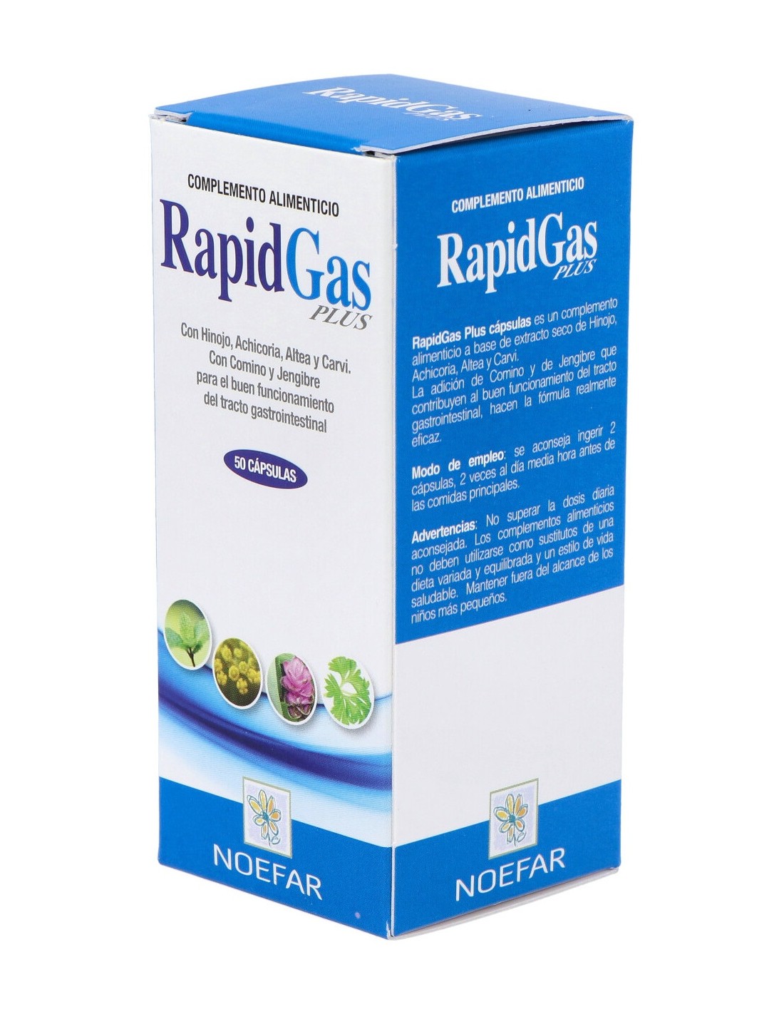 Suplemento a base de plantas que pueden ser de utilidad en caso de gases y otras molestias intestinales como el hinojo.