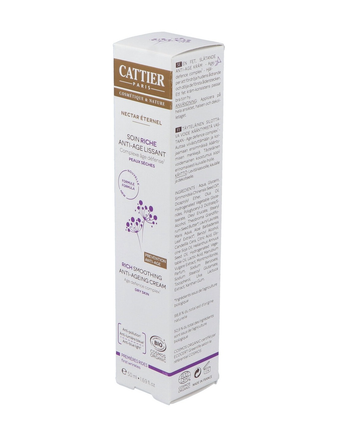 Compuesto por arcilla de montmorillonite y un conjunto de activos de origen marino y vegetal que intervienen a 3 niveles, actuando como escudo contra los ataques de los radicales libres, limitando la degradación prematura del colágeno y la elastina, combate los signos visibles e invisibles de la contaminación ambiental y lumínica y utiliza los minerales esenciales para desintoxicar y dinamizar la piel. La piel se mantiene protegida y recupera la luminosidad y la suavidad, conservando la elasticidad y la firmeza. Ideal para pieles secas gracias a la manteca de Cupuaçu y el aceite de Jojoba. Certificado Ecocert. Apto para veganos.