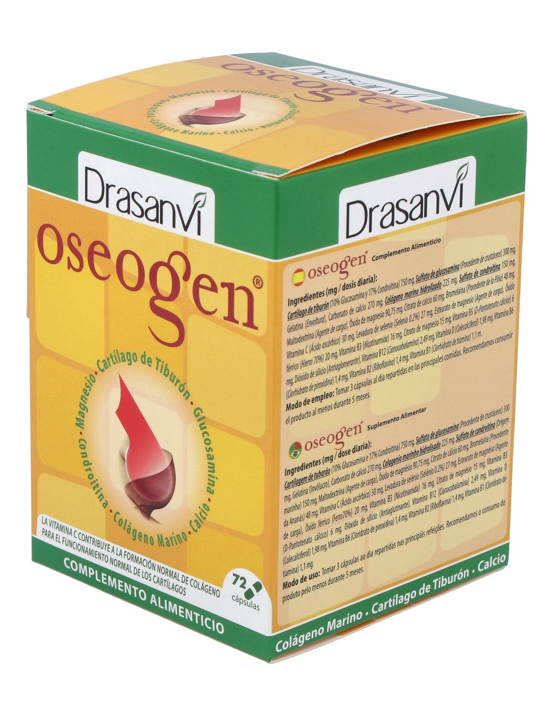 Producto que incorpora en su composición nutrientes como el colágeno marino, el cartílago de tiburón, la condroitina y el sulfato de glucosamina para contribuir al normal funcionamiento de cartílagos y huesos. Además de la alta concentración de los nutrientes ya señalados cabe destacar la presencia de 8 Vitaminas (7 de ellas aportan un 100% de cantidad diaria recomendada) y de minerales esenciales.