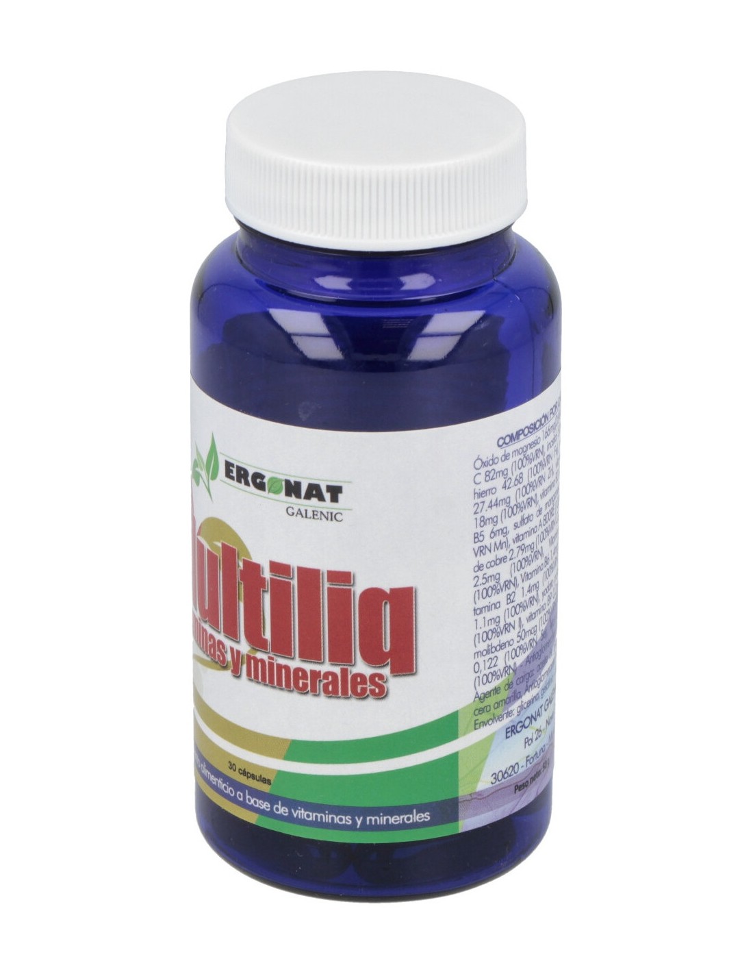 Antiaglomerante: fosfato cálcico, agente de carga: aceite de girasol, espesante: cera amarilla, antiaglomerante: lecitina de soja, envolvente: glicerina, gelatina y óxido de hierro.