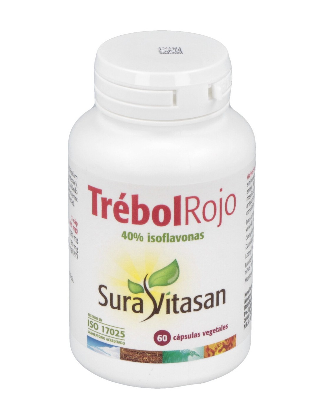 Suplemento a base de Trébol rojo combinando un extracto estandarizado de la planta y su flor pulverizada. La fórmula aporta Trébol rojo estandarizado al 40 % de isoflavonas lo que equivale a 20,6 mg de los activos.