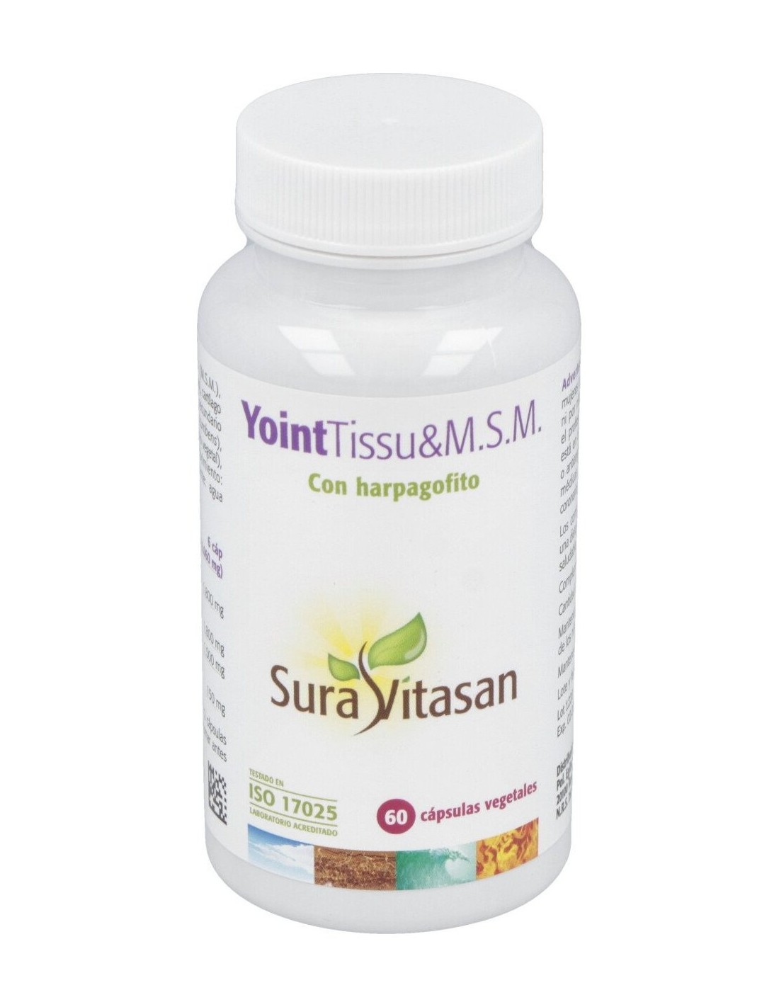 Complemento alimenticio a base Metil-sulfonil-metano (MSM), Sulfato de glucosamina, Cartílago de tiburón y un extracto estandarizado de Harpagofito al 5% de harpagósidos. Esta combinación actúa conjuntamente siendo el MSM un compuesto muy rico en azufre de fácil asimilación siendo un mineral presente en el tejido conectivo de forma natural.YOINT-TISSU Y M.S.M. CON HARPAGOPHYTUM 60cap. de SURA VITASAN