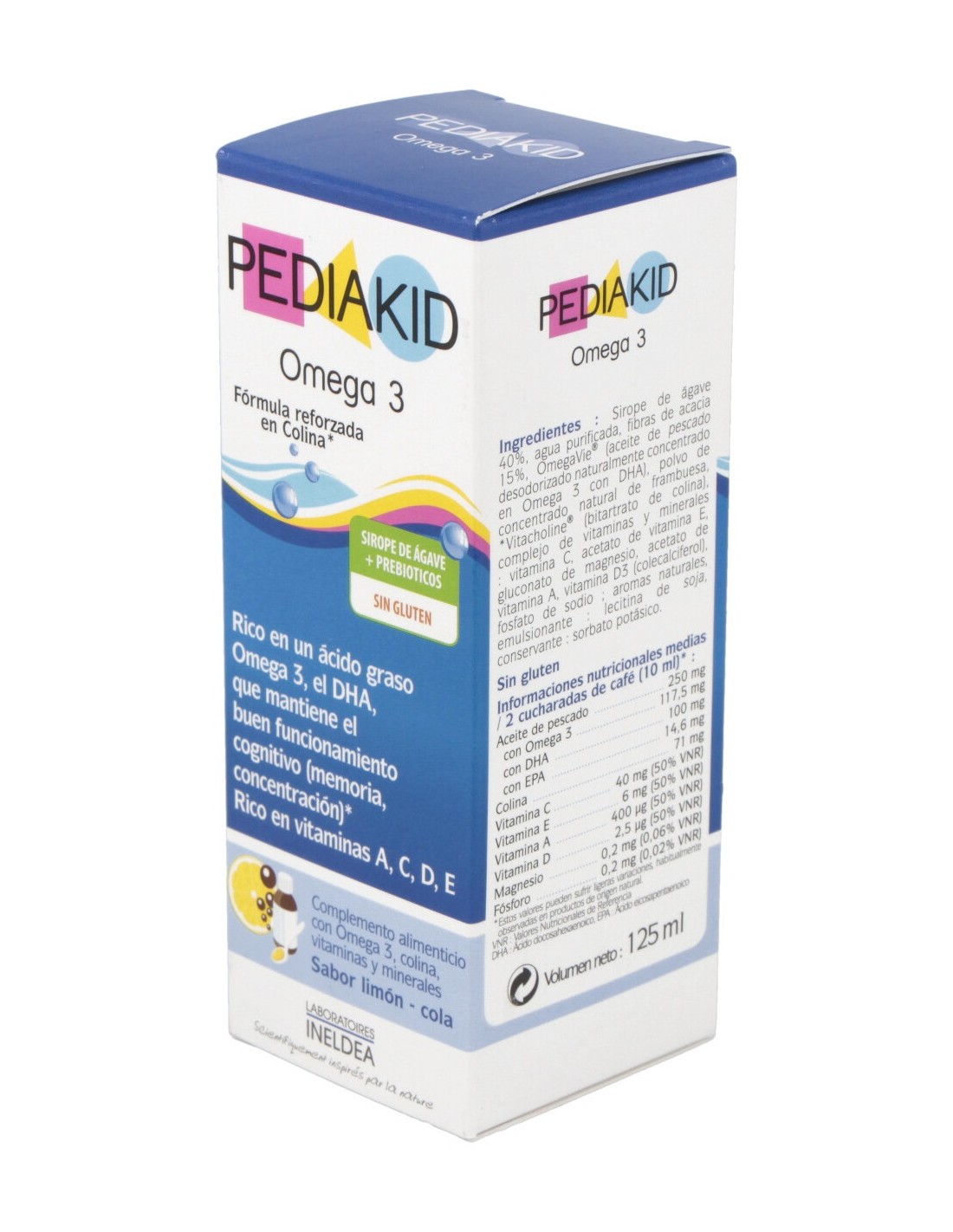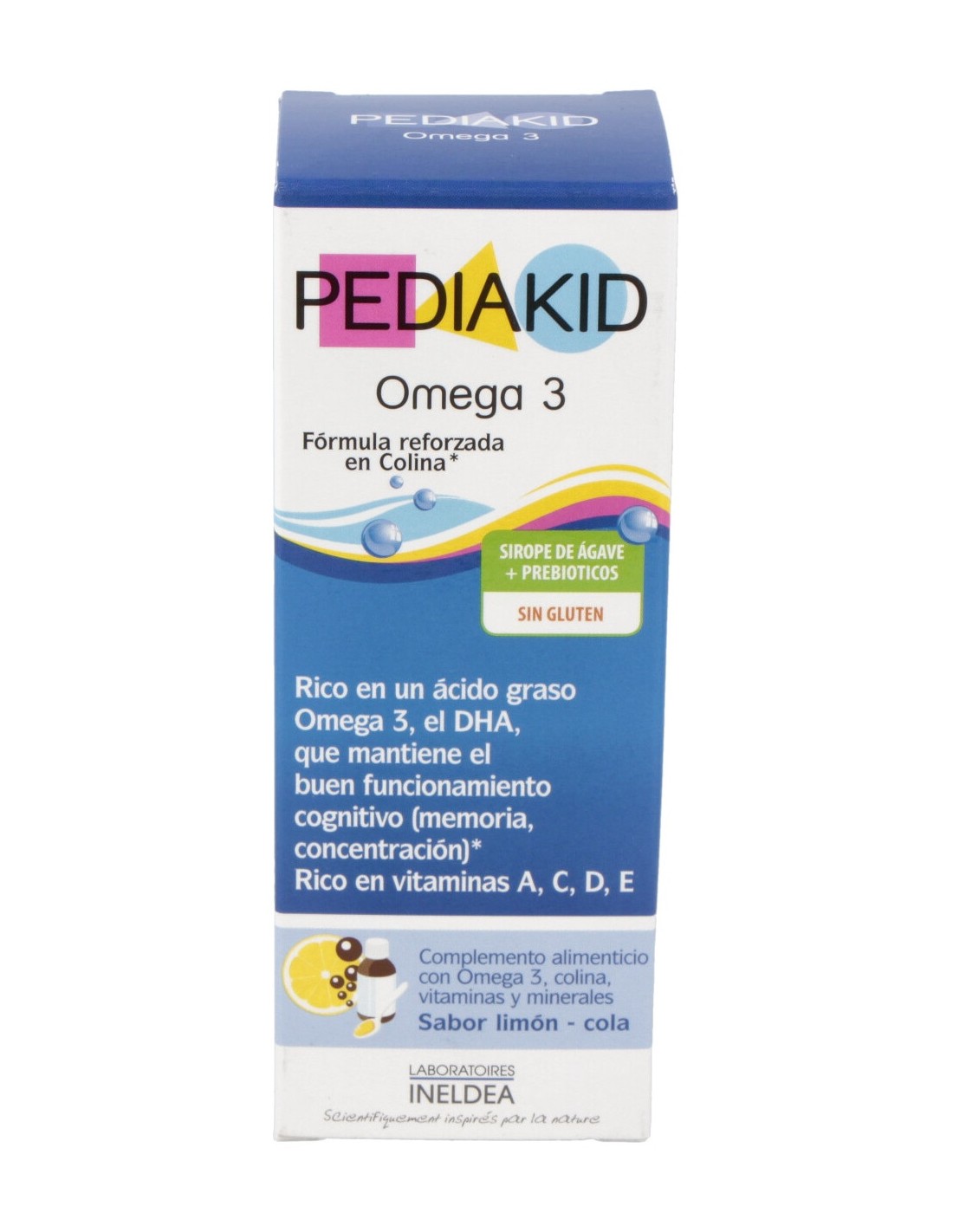 Suplemento rico en Omega 3. El DHA contribuye al normal funcionamiento cognitivo (memoria, concentración). Aromatizado a limón-Cola, es útil en caso de necesidad de atención en el periodo escolar.