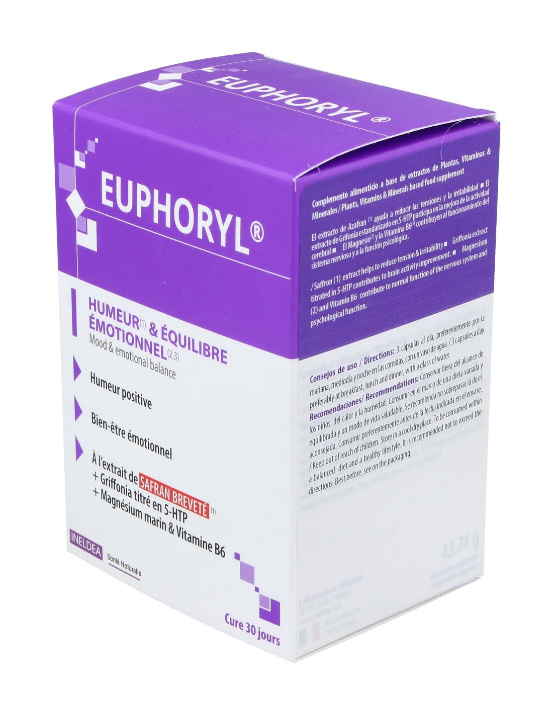Ayuda a reducir naturalmente los trastornos del estado de ánimo con el extracto de Safrán, contribuyendo al funcionamiento del sistema nervioso, a la regulación del equilibrio emocional ya las funciones psicológicas.