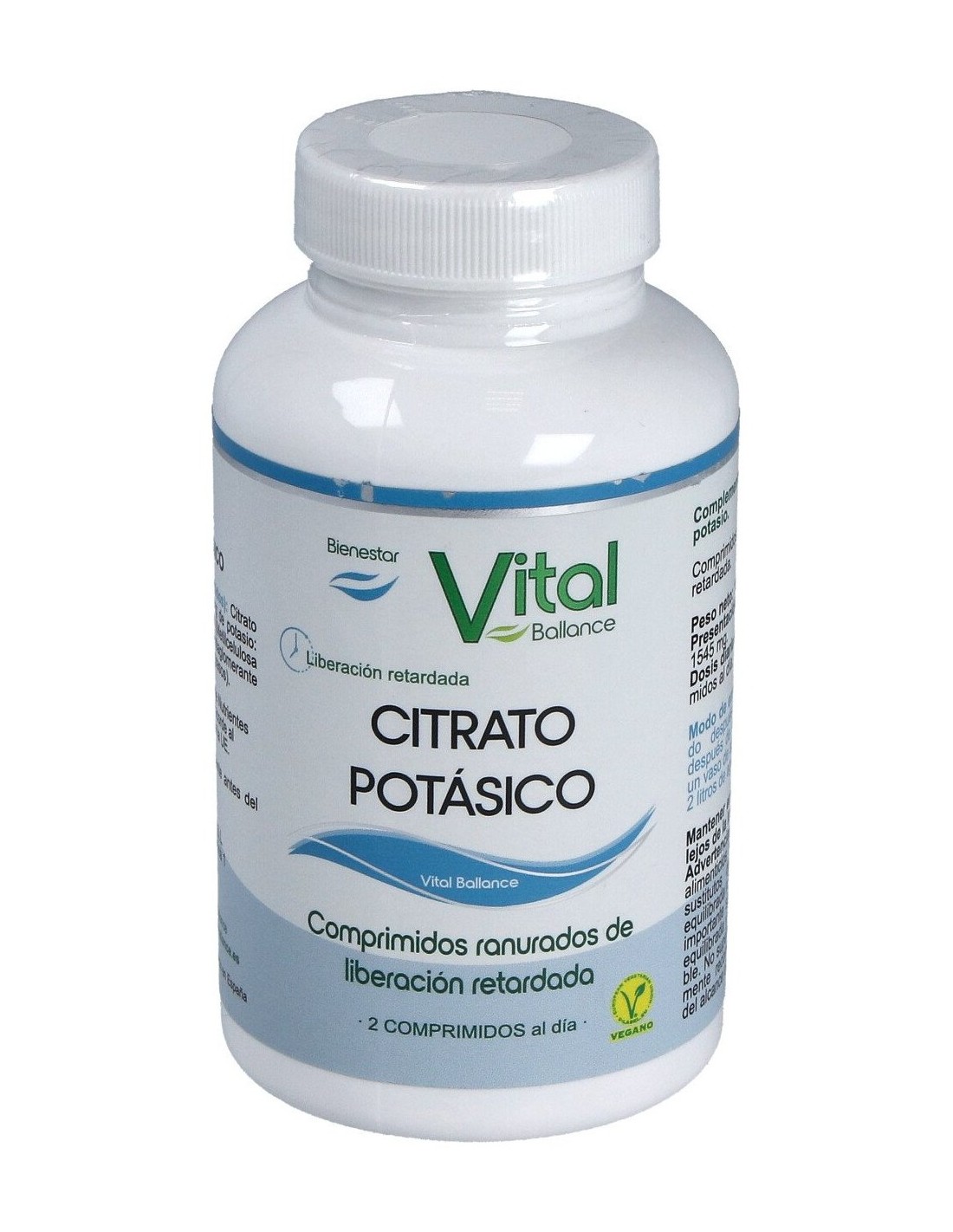 El Citrato de Potasio presenta propiedades beneficiosas en la regulación de la acidez. En comprimidos ranurados de liberación retardada. Producto vegano.