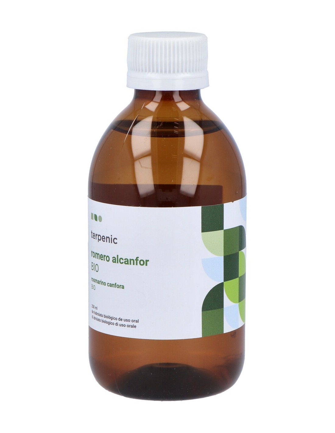 Hidrolato bio 100% puro de la destilación con agua de manantial por corriente de vapor de la planta entera del Rosmarinus officinalis.