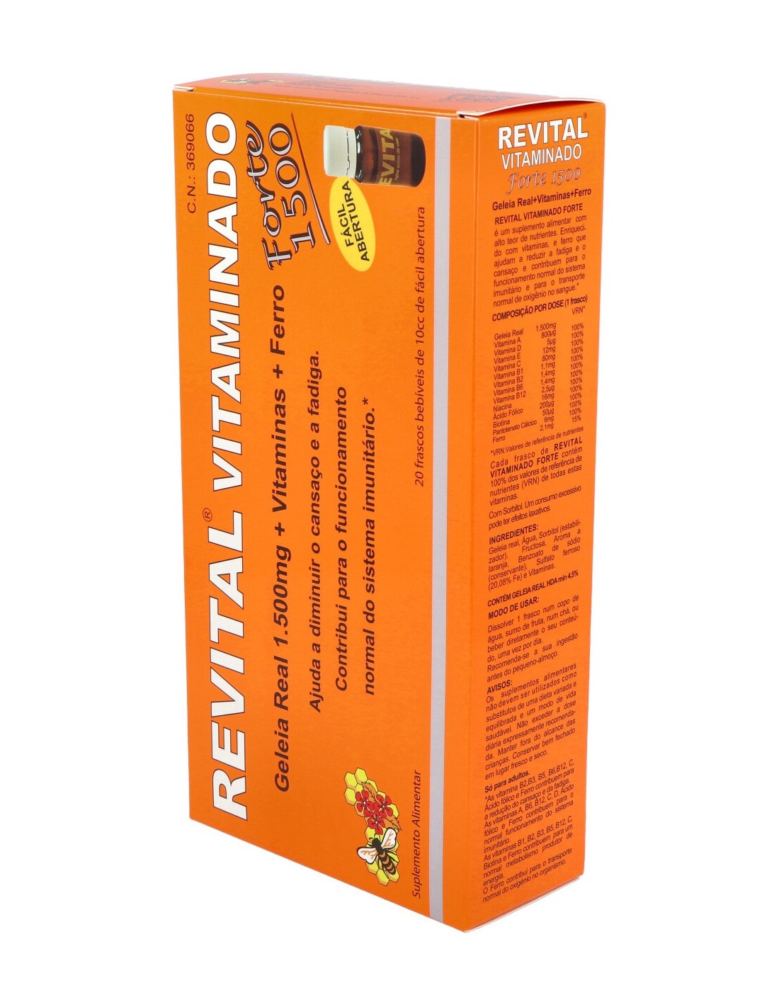 Jalea Real 1.500mg, vitaminas (A, C, D, E, B1, B2, B3, B5, B6, B8, B9 y B12) y Hierro.