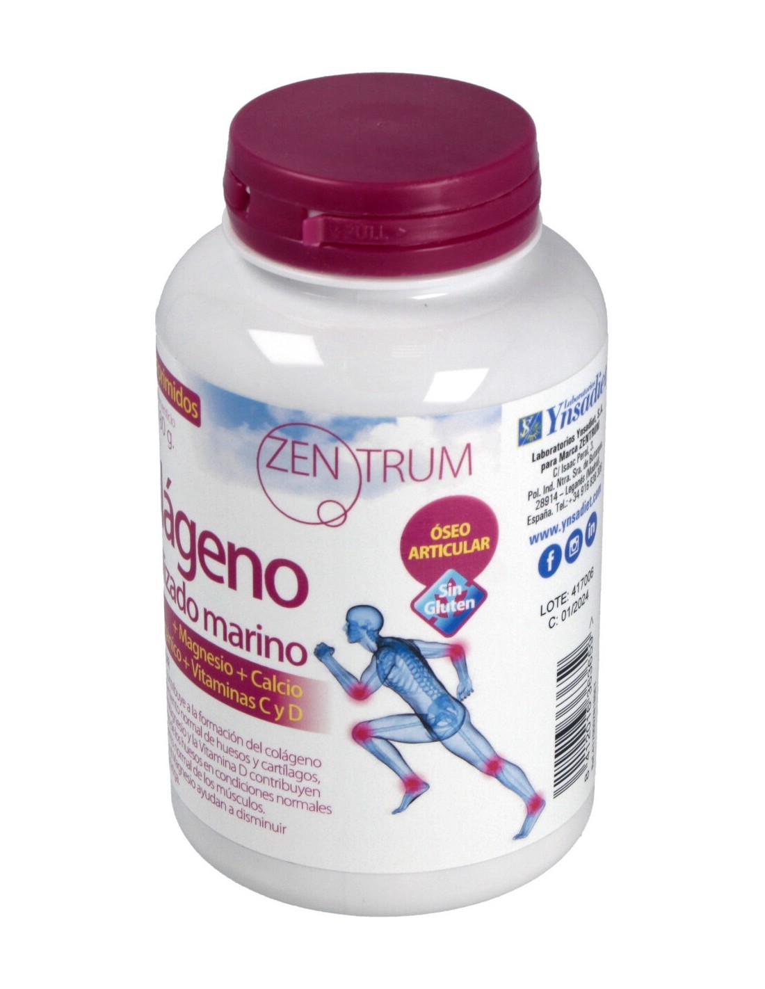 Colágeno hidrolizado marino (600 mg), Carbonato de magnesio (77 mg, eq. a 19,7 mg de Magnesio), Carbonato cálcico (58 mg, eq. a 23,2 mg de Calcio), Hidróxido de Magnesio (20 mg, eq. a 12 mg de Magnesio), Agente de carga (Celulosa microcristalina), Antiaglomerante (Estearato magnésico), Vitamina C (Ácido L Ascórbico) (10 mg), Antiaglomerante (Dióxido de silicio), Bambú extracto seco (Bambusa arundinacea L, tallo) (5 mg, eq. a 3,5 mg de Silicio orgánico), Colecalciferol (Vitamina D) (0,83 mcg).