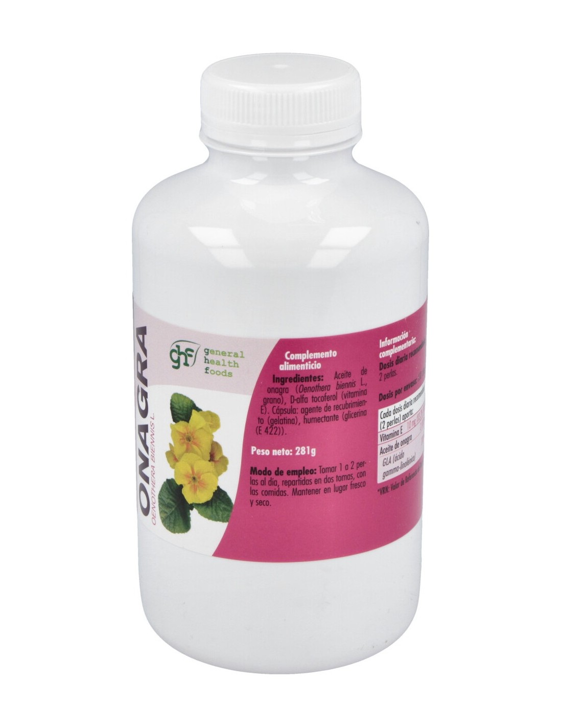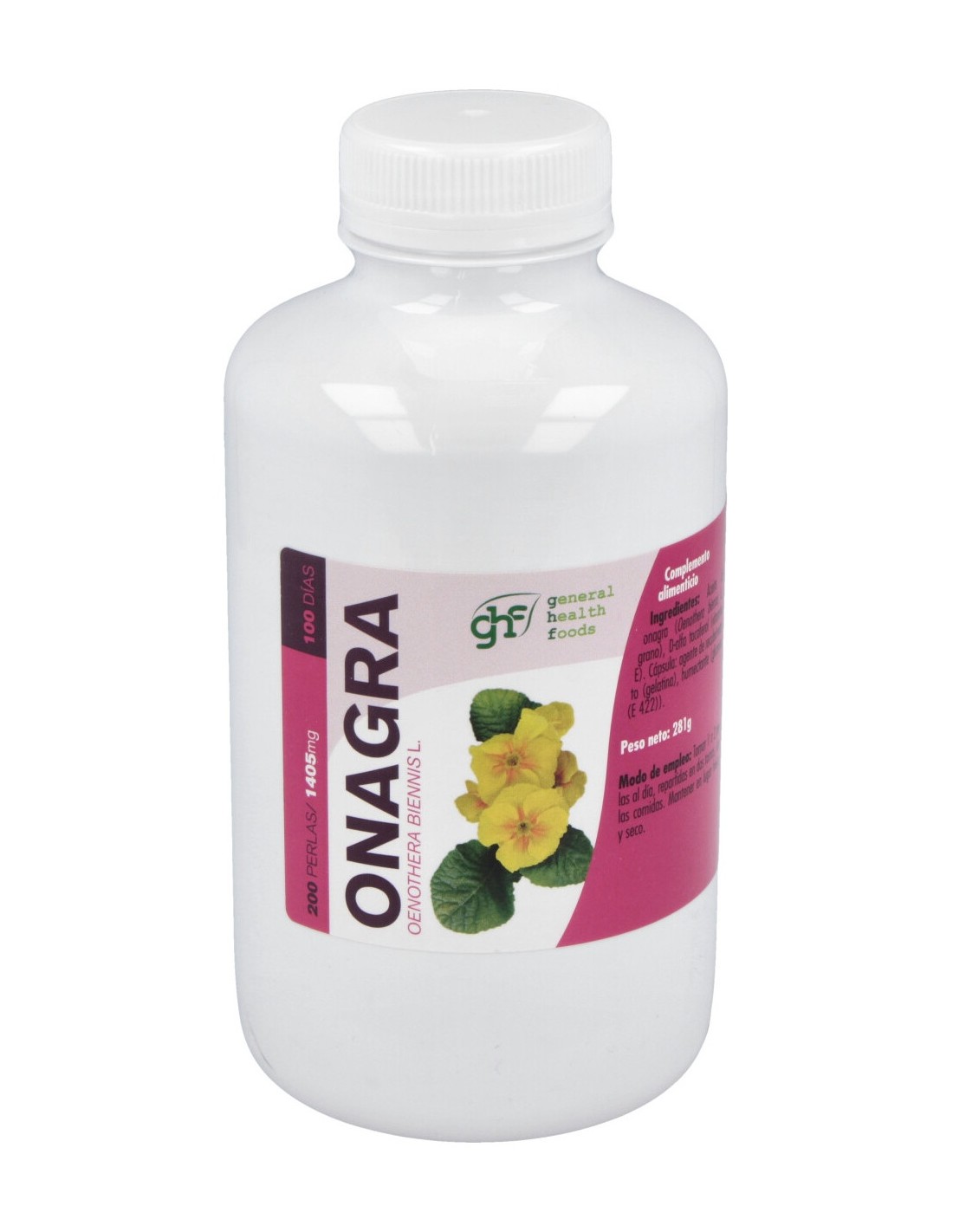 El aceite de onagra es rico en ácidos grasos esenciales (ácido gammalinoléico y gammalinolénico-GLA). La onagra puede ser de utilidad para la mujer durante el síndorme premenstrual. La vitamina E contribuye a proteger a las células frente al daño oxidativo.