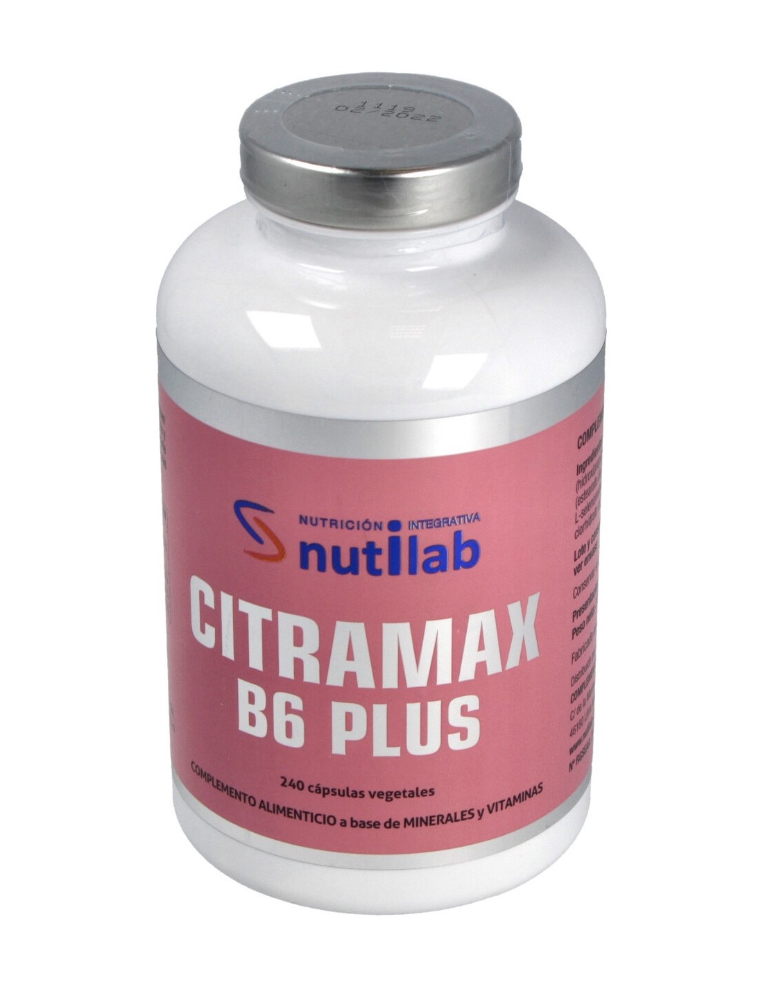 Complemento alimenticio a base de minerales y vitaminas que contribuye al mantenimiento normal de los huesos, a la reducción del cansancio y la fatiga, al balance electrolítico, al normal metabolismo productor de energía, al funcionamiento normal del sistema nervioso y muscular, a la síntesis normal de proteínas y a la función psicológica normal.CITRAMAX B6 PLUS 240cap. de NUTILAB