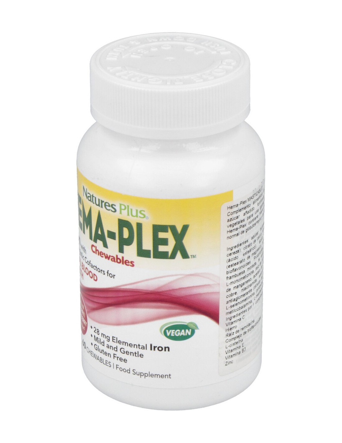 Complemento alimenticio de hierro, con edulcorantes, fortificado con vitaminas y extractos vegetales para una óptima biodisponibilidad y tolerancia. Apto para veganos. Sabor a cereza.