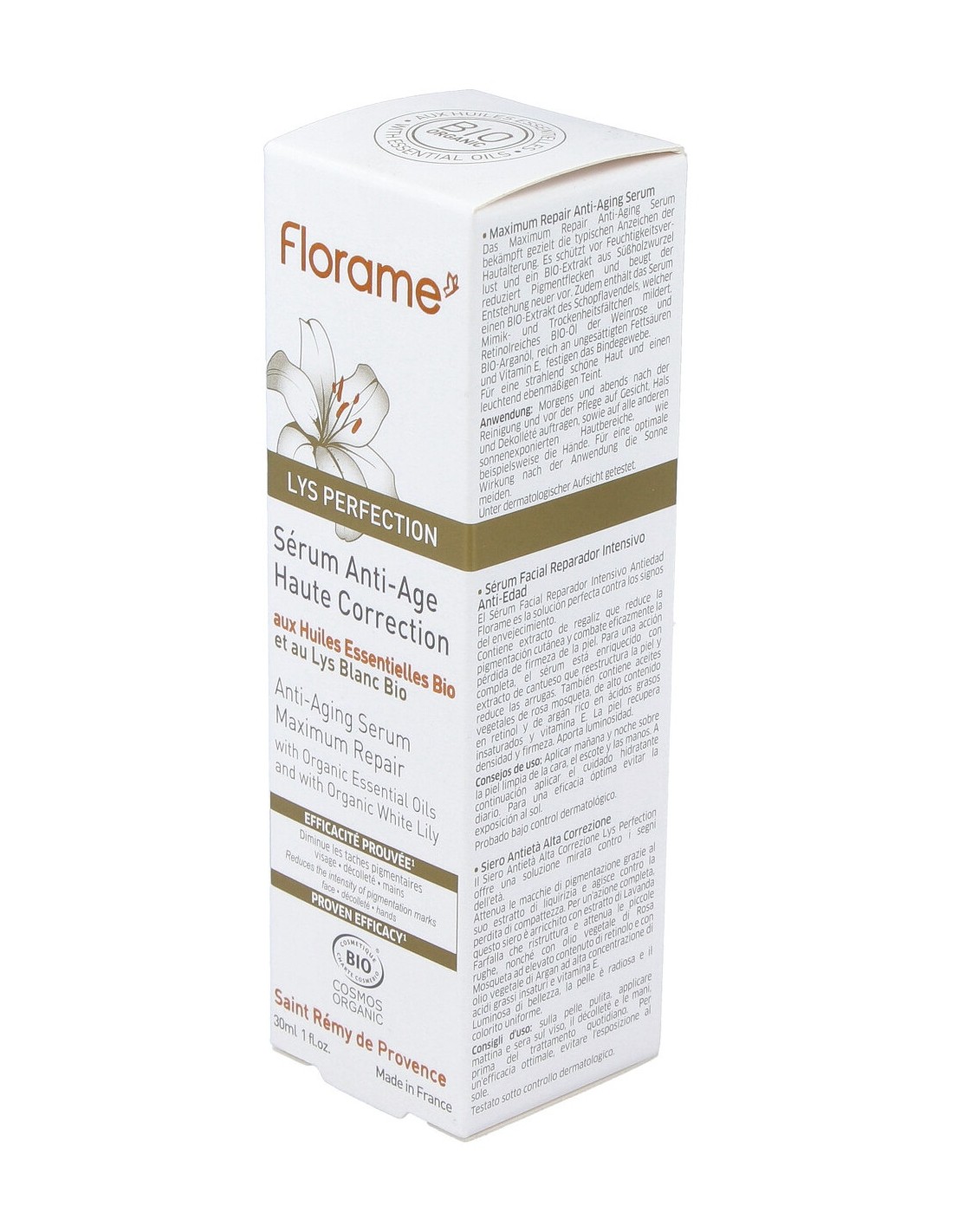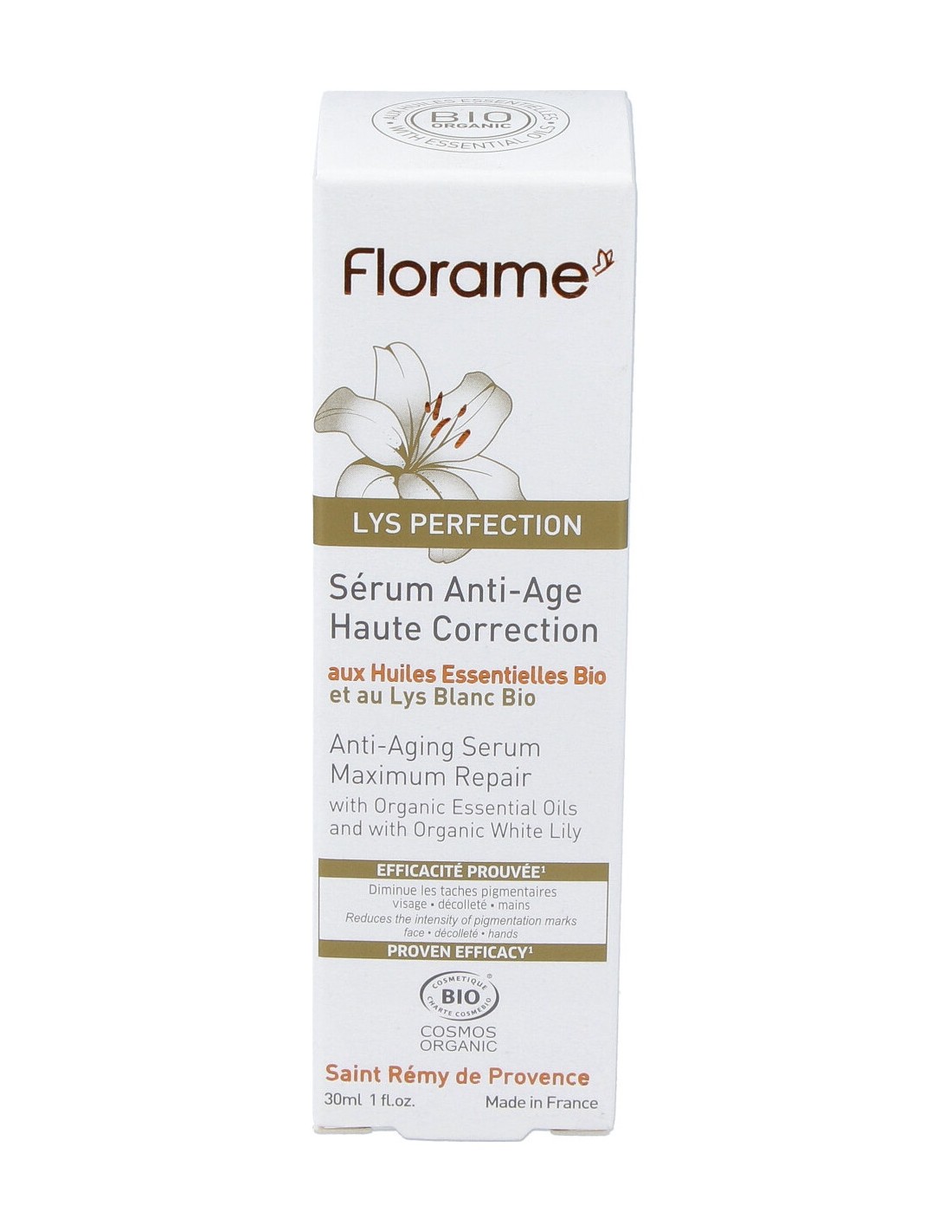 Proporciona una solución específica contra los signos del envejecimiento. Reduce las manchas de pigmento y actúa contra la pérdida de firmeza. Certificado ECOCERT.