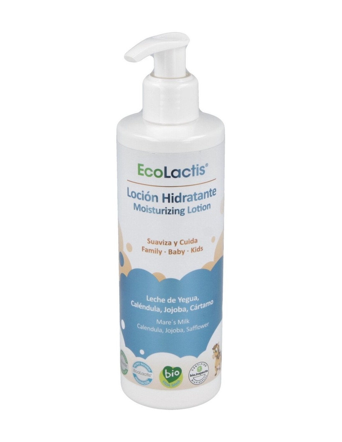 Emulsión ecológica ligera, recomendada para bebés, niños y adultos con pieles sensibles, delicadas o con problemas dermatológicos.