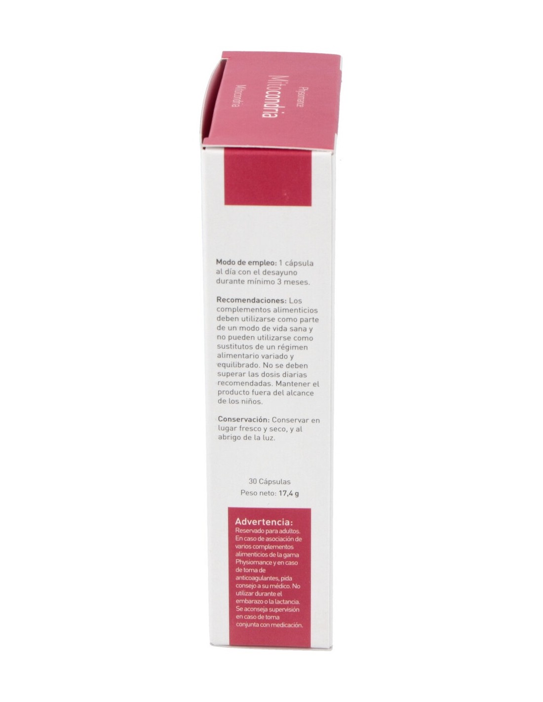 Cápsula de origen vegetal: hidroxipropilmetilcelulosa, extracto de ginkgo biloba estandarizado en terpenos lactonas y ginkgoflavonoides, vitamina C (ácido L áscorbico), agente de carga: maltodextrina, N-acetil-L-carnitina, ácido alfa lipoico, N-acetilcisteína, coenzima Q10, trans-resveratrol, levadura enriquecida en selenio, vitamina B3 (nicotinamida), bisglicinato de zinc, antiaglomerante: esterato de magnesio, vitamina E natural (acetato de D-alfa-tocoferilo), antiaglomerantes: dióxido de silicio, clorhidrato de tiamina (vitamina B1), vitamina B5 (D-pantotenato cálcico), vitamina B8 (biotina), vitamina B12 (metilcobalamina), vitamina B2 (riboflavina 5´-fosfato sódico), vitamina D3 natural (colecalciferol), vitamina B6 (clorhidrato di piridoxina), vitamina B9 (L- metilfolato de calcio).