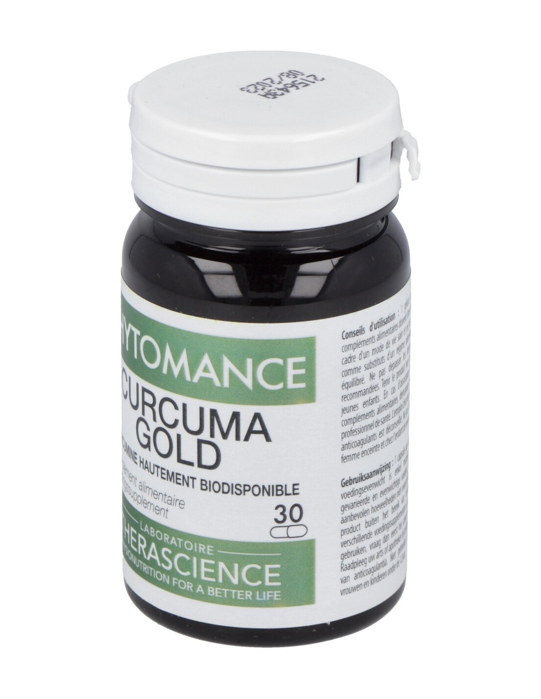 Curcussentiel® complejo (extracto seco de raíz de Curcuma longa L. encapsulado por fibras de galactomanano de fenogreco, extracto de raíz de jengibre estandarizado en gingeroles), cápsula de origen vegetal: hidroxipropilmetilcelulosa.