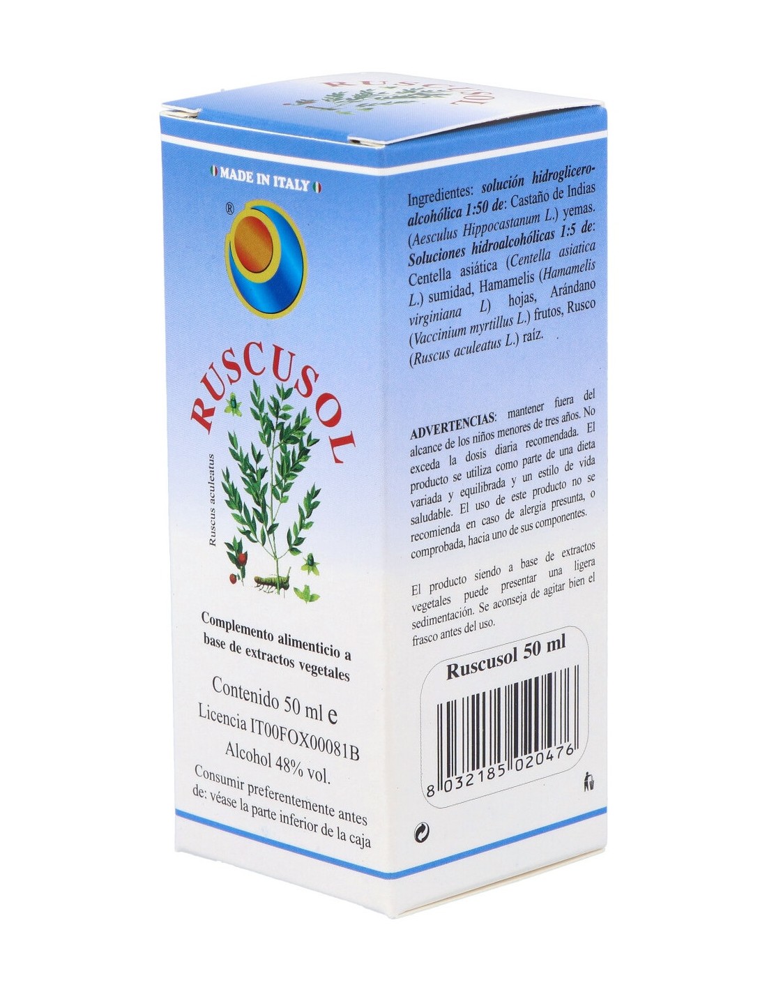 MSA (Macerado Espagírico-Alquímico) de Castaño de Indias (Aesculus Hippocastanum L.) yemas 2,320 g. TSA (Tintura Espagírico-Alquímica) 1:5 de: Centella asiática (Hydrocotile asiatica L.) sumidad 1,692 g, Hamamelis (Hamamelis virginiana L.) hojas 0,483 g, Arándano (Vaccinium myrtillus L.) frutos 0,242 g, Rusco (Ruscus aculeatus L.) raíz 0,096 g.