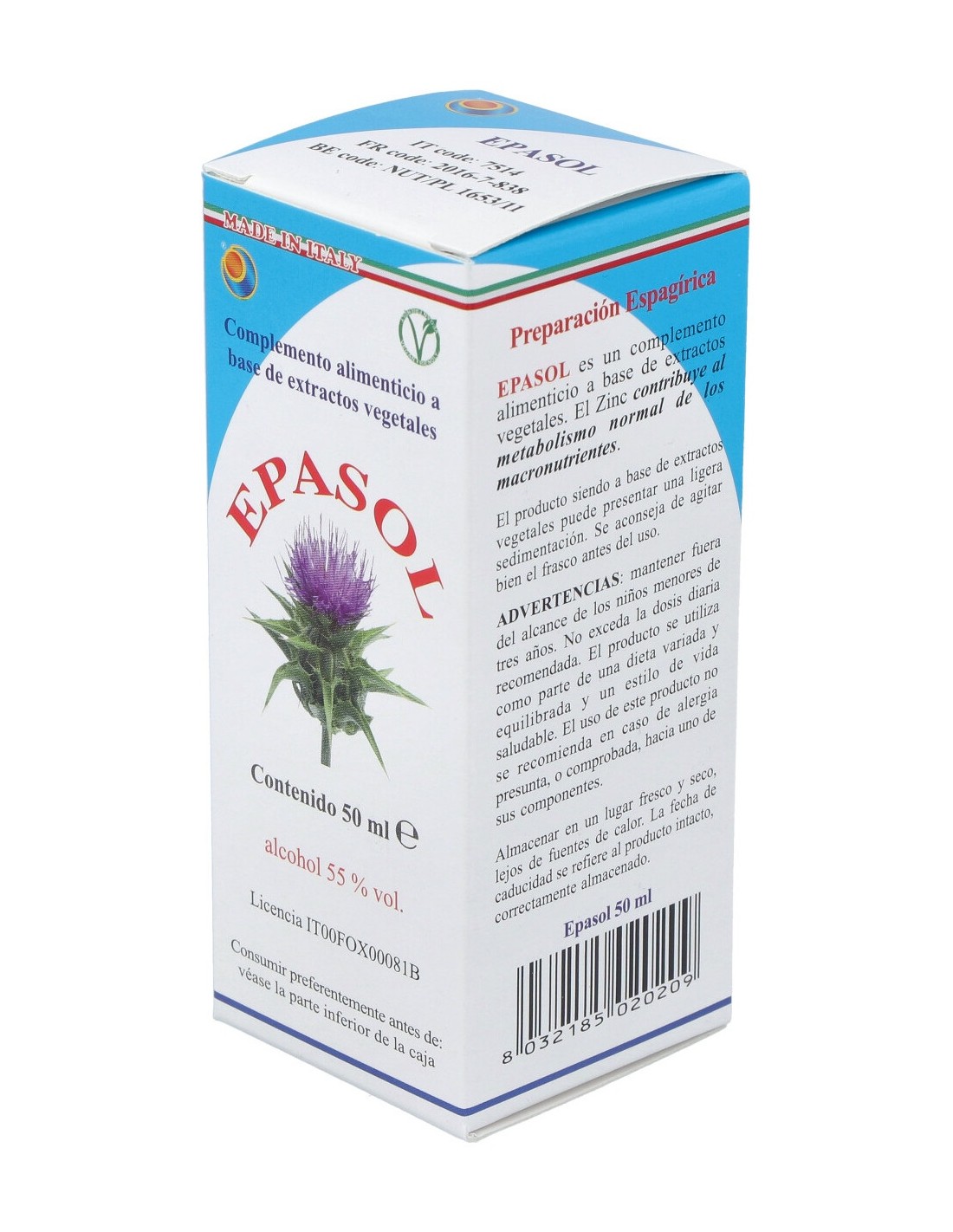 TSA (Tintura Espagírico-Alquímica de Solanimus con R.E. 1/5) de: Cardo mariano (Silybum marianum Gaertn.) semilla 1,3125 g, Alcachofa (Cynara scolymus L.) hojas 1,3125 g, Diente de león (Taraxacum officinale Weber) raíz 892,5 mg, Ruibarbro (Rheum palmatum var. Tagunticum Maxim) rizoma 892,5 mg, Achicoria (Cycorium intybus L.) hojas y raíz 525 mg, Marrubio (Marrubium vulgare L.) planta florecida 228,9 mg. QSPC (QuintaEsencia Espagirica de Paracelso Canónica) de: Menta piperita (Menta piperita L.) hojas 24,675 mg, Romero (Rosmarinus officinalis L.) hojas 24,675 mg. Gluconato de Zinc. (aporte en Zinc 5,145 mg