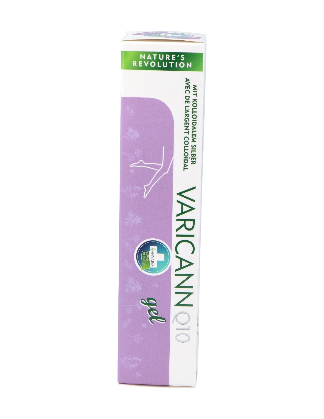 Aqua, Glycerin, Cannabis Sativa Seed Extract, Aesculus Hippocastanum Fruit Extract, Hamamelis Virginiana Leaf Extract, Ruscus Aculeatus Root Extract, Vitis Vinifera Leaf Extract, Centella Asiatica Leaf Extract, Ginkgo Biloba Leaf Extract, Melilotus Officinalis Extract, Dimethicone, Troxerutin, Carbomer, Triethanolamine, Cymbopogon Citratus Leaf Oil, Tocopheryl Acetate, Allantoin, Diosmine, Ubiquinone, Hesperidin, Colloidal Silver.