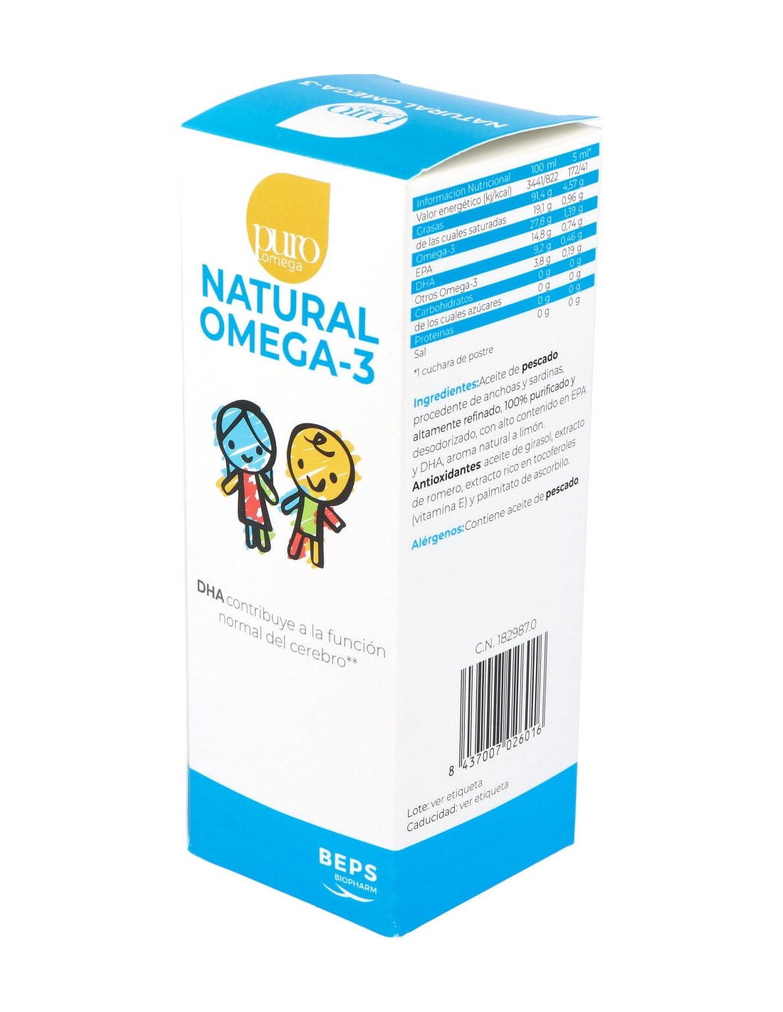 Este es un suplemento natural de omega 3 que está dirigido a aumentar las reservas de omega en el cuerpo. Este producto presentado por Beps Biopharm está pensado para ofrecer a niños desde el primer año de vida. La fórmula del suplemento está realizada para facilitar la absorción de omega en el organismo. Tiene un sabor a limón agradable para los más pequeños.
