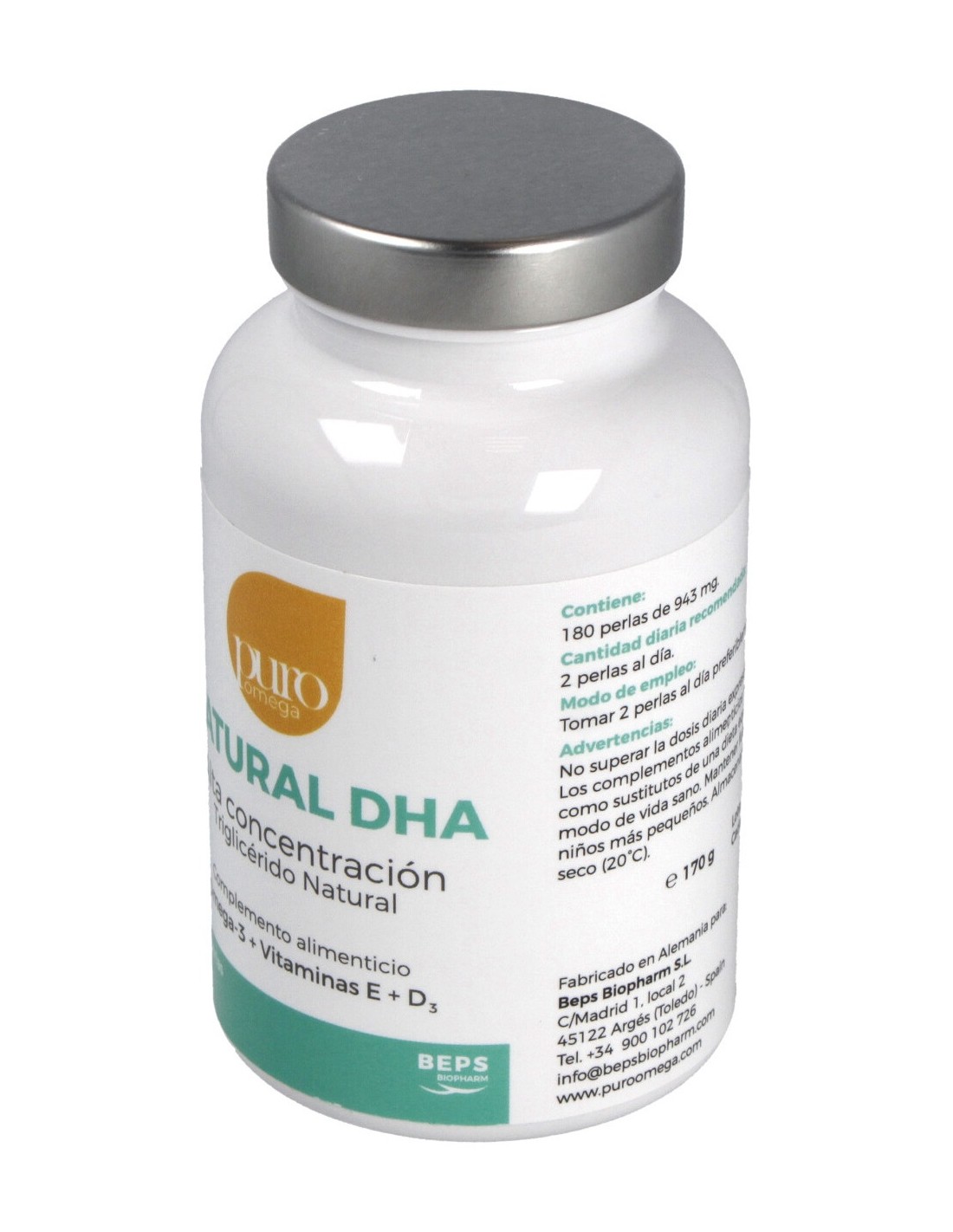 Aceite de pescado (sardinas y anchoas) [65% DHA (ácido docosahexaenoico) / 15% EPA (ácido eicosapentaenoico)] Gelatina de pescado, Humectante (glicerina), Vitamina E (alfa-tocoferol), Vitamina D3 (colecalciferol).
