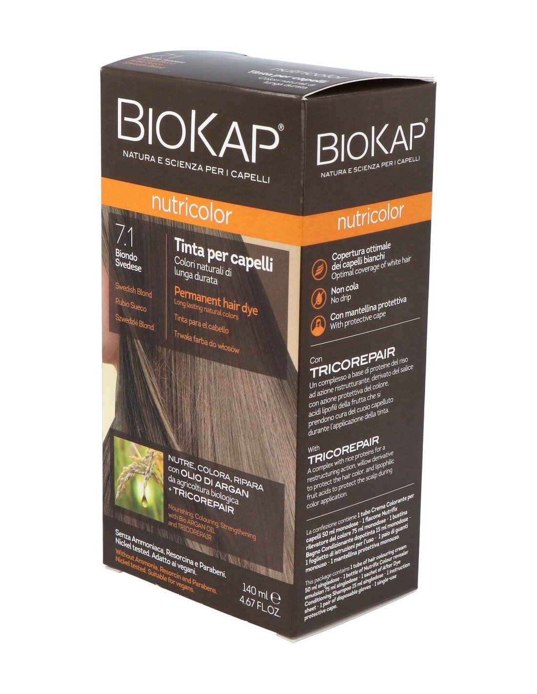 TRICOREPAIR (complejo con proteínas del arroz), aceite de argán, proteína vegetal de trigo, soja, arroz y avena, Lactosafe® (ácidos frutales lipofílicos) y extracto de sauce.