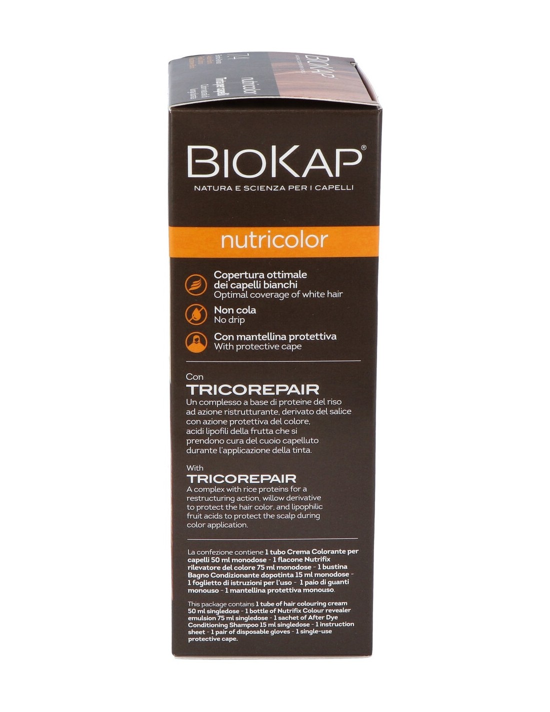 Su exclusiva fórmula con ingredientes vegetales y alta tolerancia de la piel nutre y repara el cabello mientras lo tiñe y cubre perfectamente las canas. Nutre el cabello y hace que sea más suave y brillante. Su exclusiva fórmula con ingredientes vegetales y alta tolerancia de la piel nutre y repara el cabello mientras lo tiñe y cubre perfectamente las canas. Nutre el cabello y hace que sea más suave y brillante.Precauciones:No se han descrito.Composición:TRICOREPAIR (complejo con proteínas del arroz), aceite de argán, proteína vegetal de trigo, soja, arroz y avena, Lactosafe® (ácidos frutales lipofílicos) y extracto de sauce.Crema colorante: Aqua, lauramide mea, ethanolamine, cetaryl alcohol, glyceryl stearate palmitic acid, glycerin, argana spinosa oil, hydroyzed rice protein, hydrolyz...