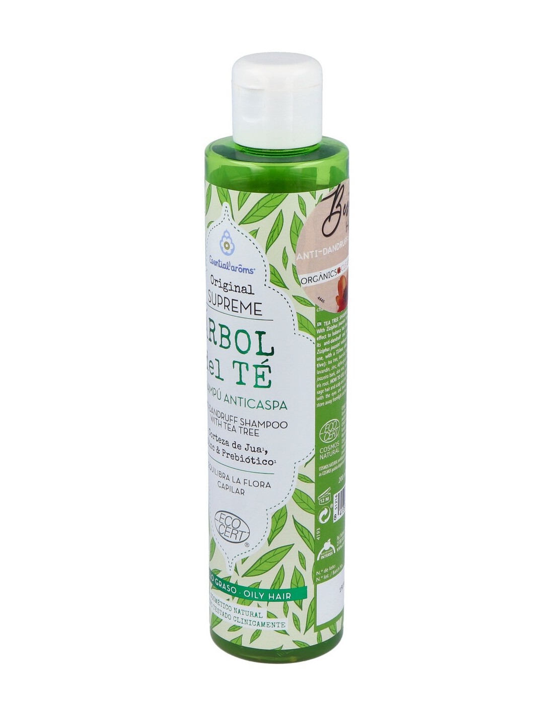 Equilibra la flora del cuero cabelludo, regula el sebo, ayuda a controlar la dermatitis seborreica y calma el picor.