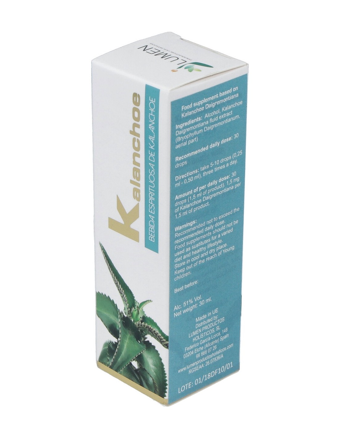 Kalanchoe de agricultura biodinámica y ecológica en solución hidroalcohólica.