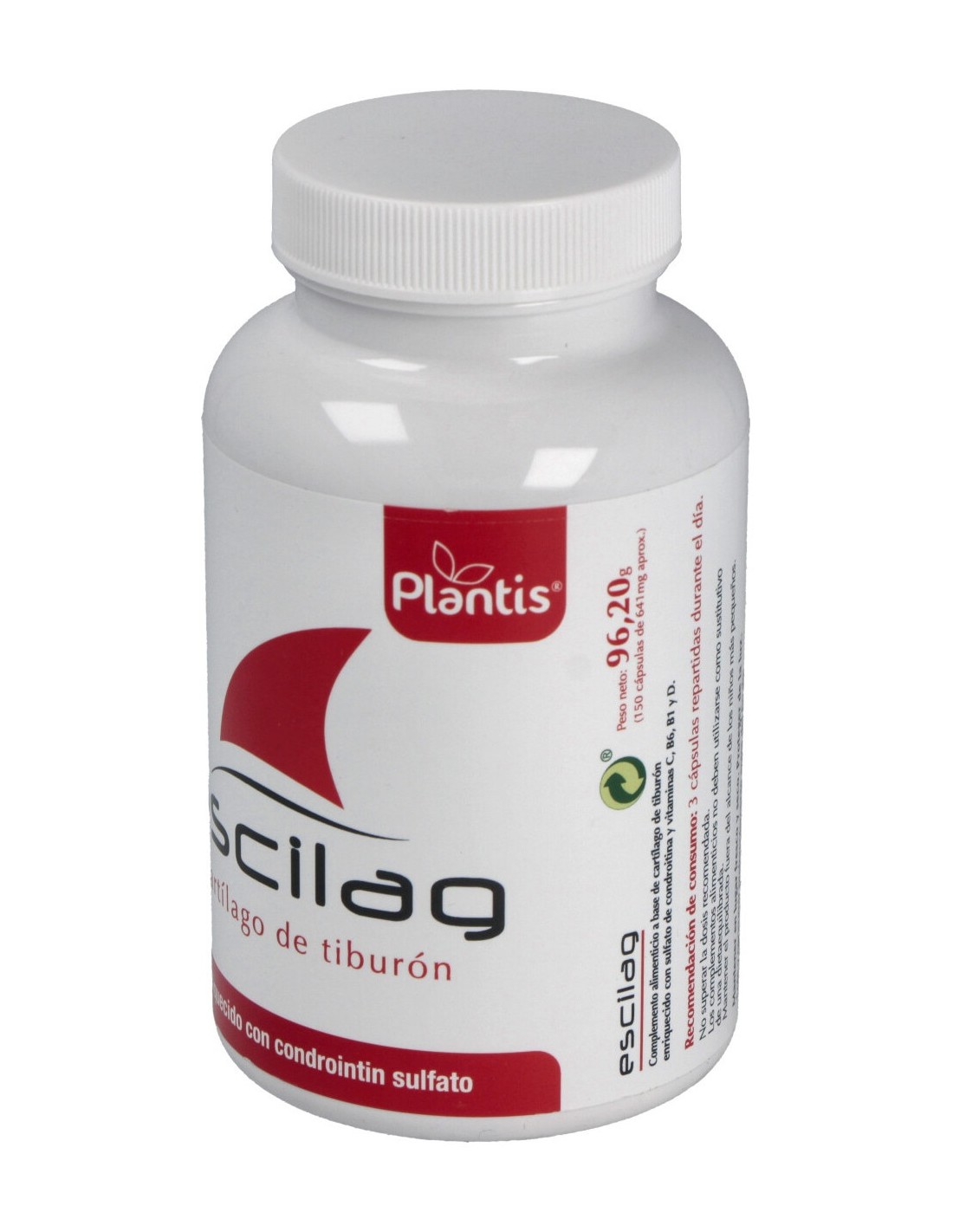Cartílago de tiburón enriquecido. Cápsulas vegetales con 70% de cartílago de tiburón, 25% de condroitin sulfato y vitaminas C, B6, B1, D.