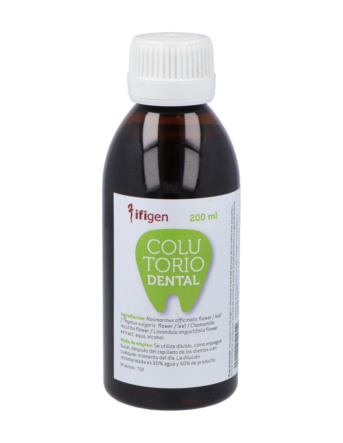 Diluir en agua al 50% y hacer enjuagues bucales.