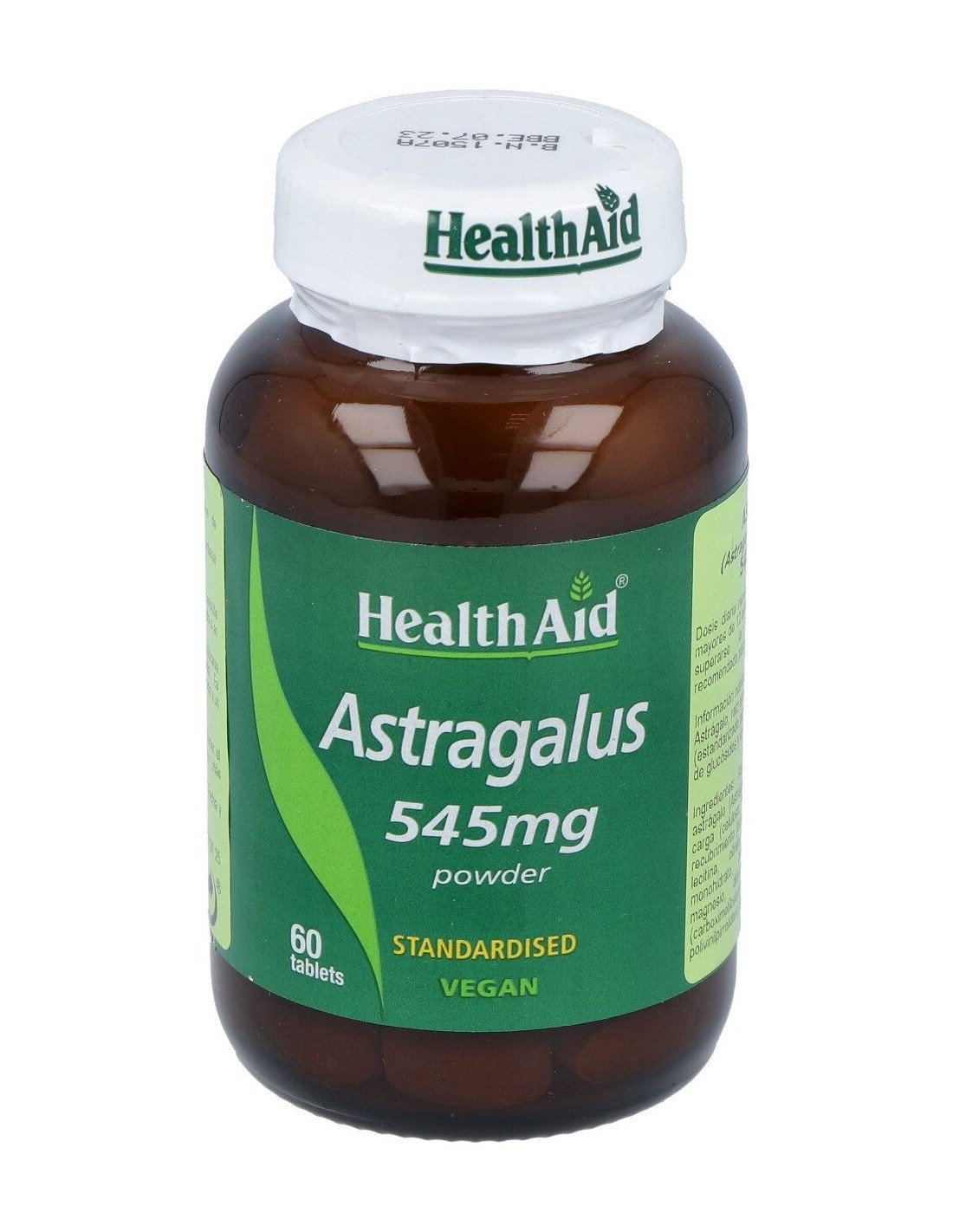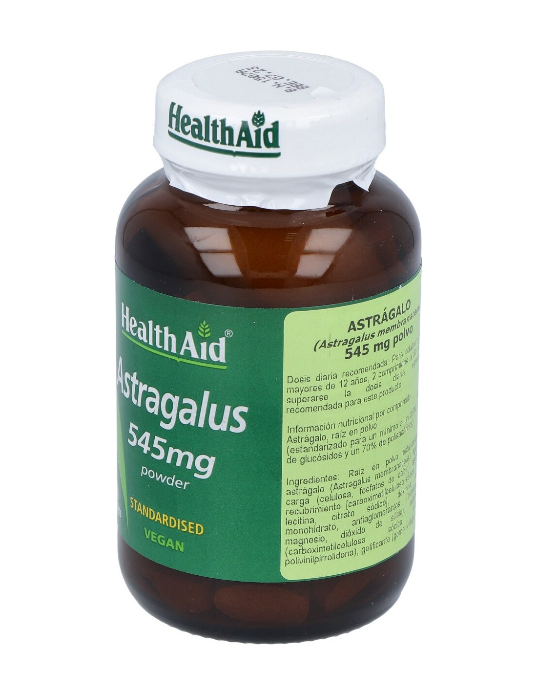 Astrágalo (Astragalus membranaceus), extracto de raíz (estandarizado para un mínimo de un 0,5% de glucósidos y un 70% de polisacáridos) ......545 mg