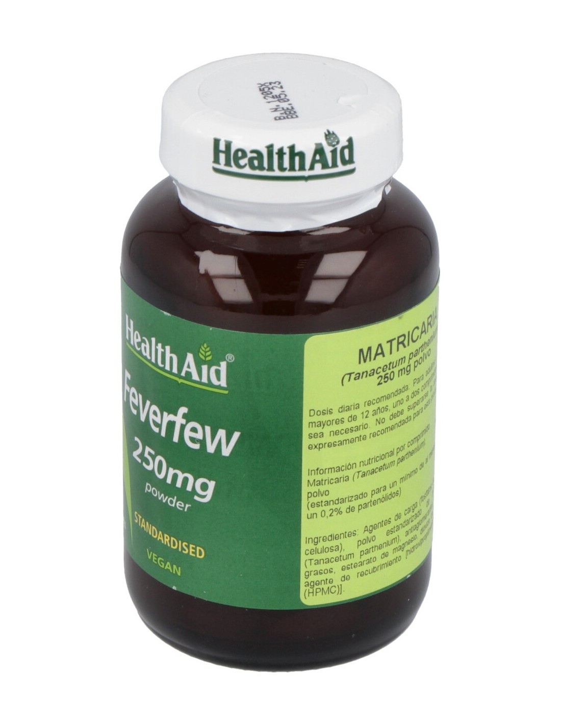 Matricaria (Tanacetum parthenium), polvo (estandarizado para un mínimo de 0,2% de partenólidos).....................250 mg