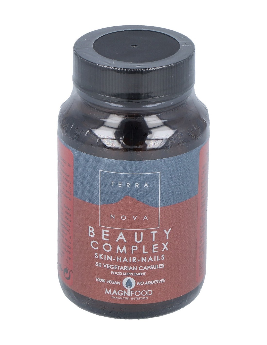 Complemento alimenticio a base de plantas del Complejo Magnifood, vitaminas y minerales. Contribuye al mantenimiento del cabello, piel y uñas en condiciones normales. Apto para vegetarianos y veganos.