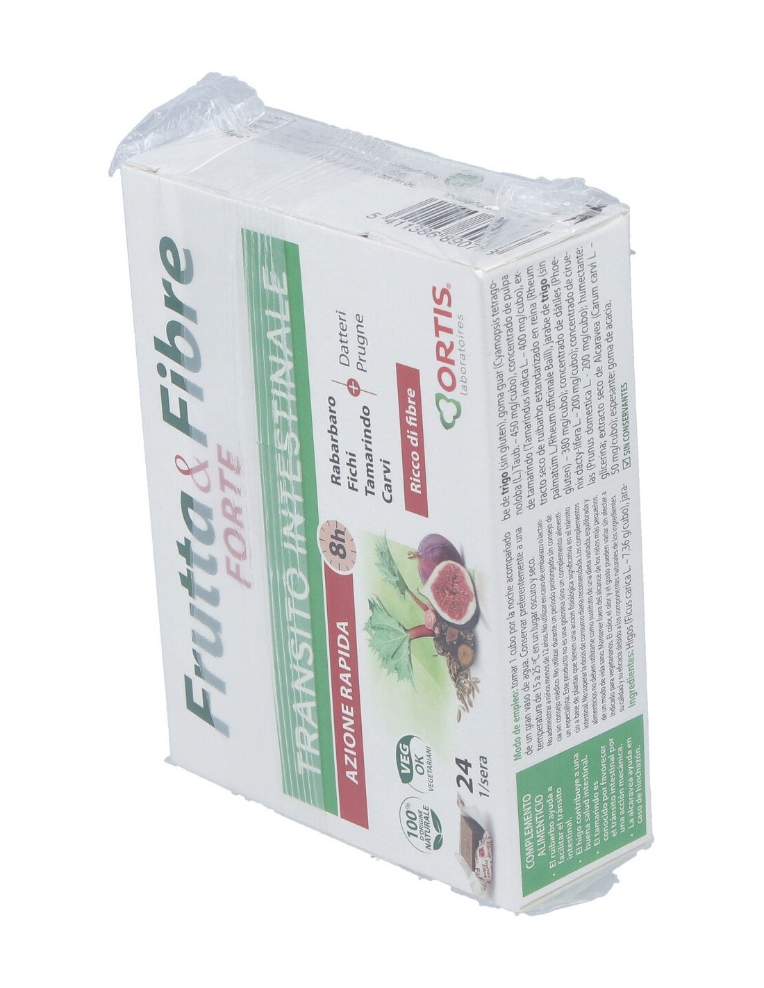 Higos (Ficus carica L. – 7,36 g/ cubo), jarabe de trigo (sin gluten), goma guar (Cyamopsis tetragonoloba (L.) Taub. – 450 mg/ cubo), concentrado de pulpa de tamarindo (Tamarindus indica L. – 400 mg/cubo), extracto seco de ruibarbo estandarizado en reina (Rheum palmatum L./Rheum officinale Baill), jarabe de trigo (sin gluten) – 380 mg/cubo): concentrado de dátiles (Phoenix dacty-lifera L. – 200 mg/cubo): concentrado de ciruelas (Prunus domestica L. - 200 mg/cubo): humectante: glicerina: extracto seco de Alcaravea (Carum carvi L. – 50 mg/cubo): espesante: goma de acacia.