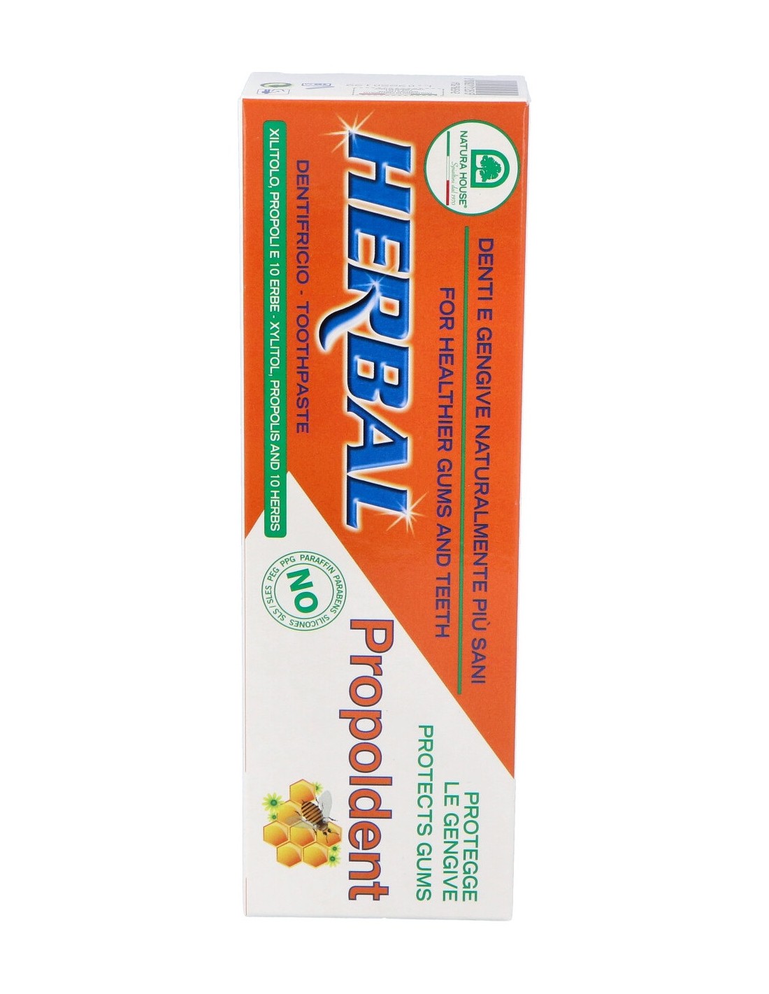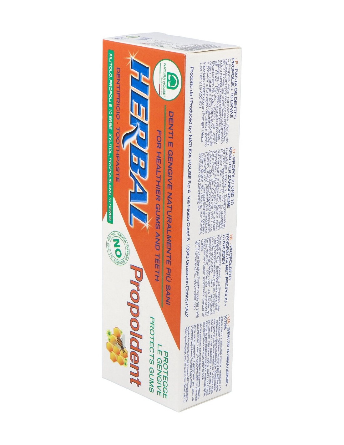 Dentífrico con propolis y combinación de 10 hierbas. Dientes y encías protegidas gracias a la acción del própolis.