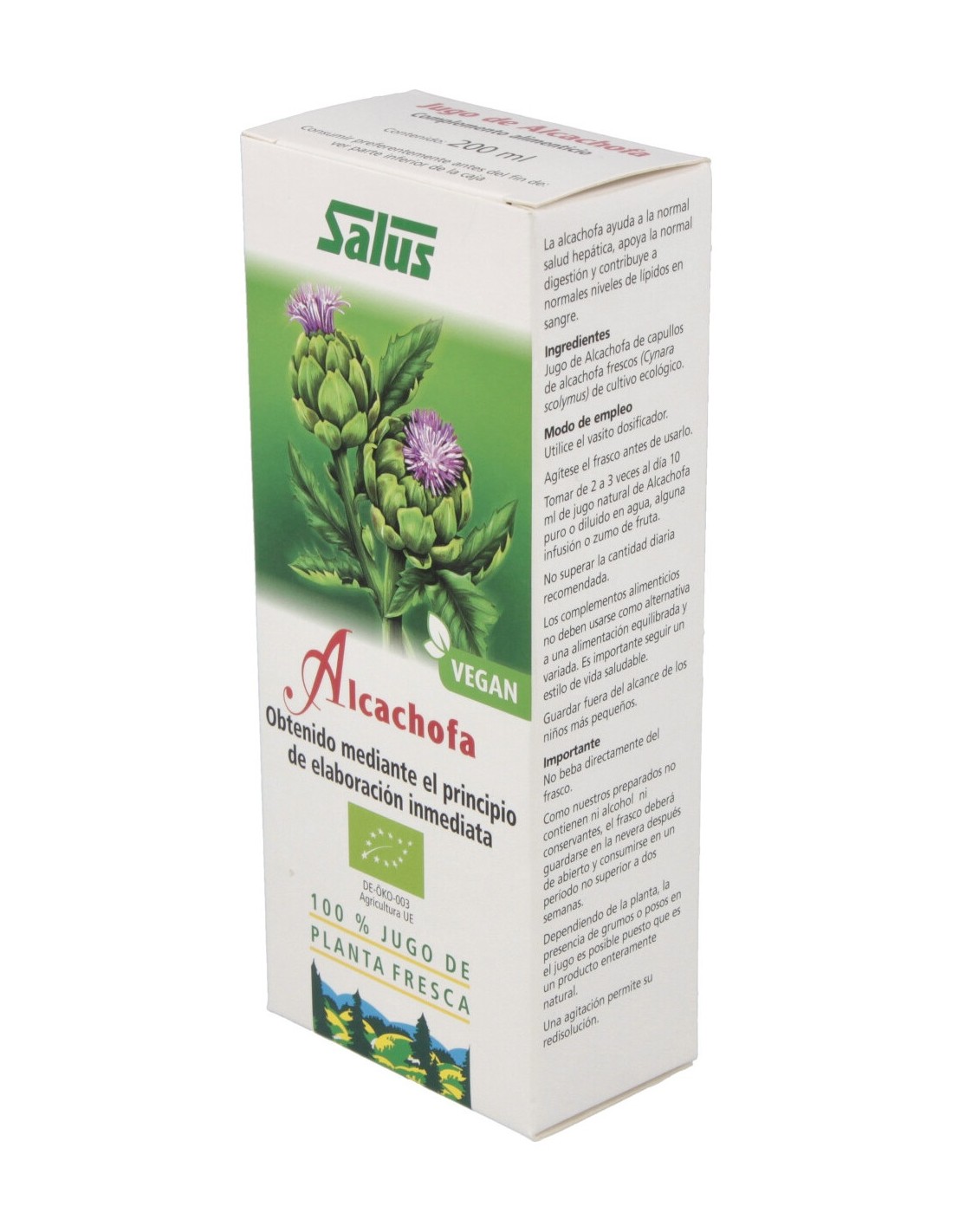 El jugo de alcachofa se obtiene por prensado de la planta fresca en su óptimo punto de maduración, por lo que ofrece el espectro completo de principios tal y como se encuentran en la planta fresca, sin alteración alguna. Ayuda a la digestión y a mantener el hígado sano. Asimismo, contribuye a mantener niveles normales de lípidos en sangre.