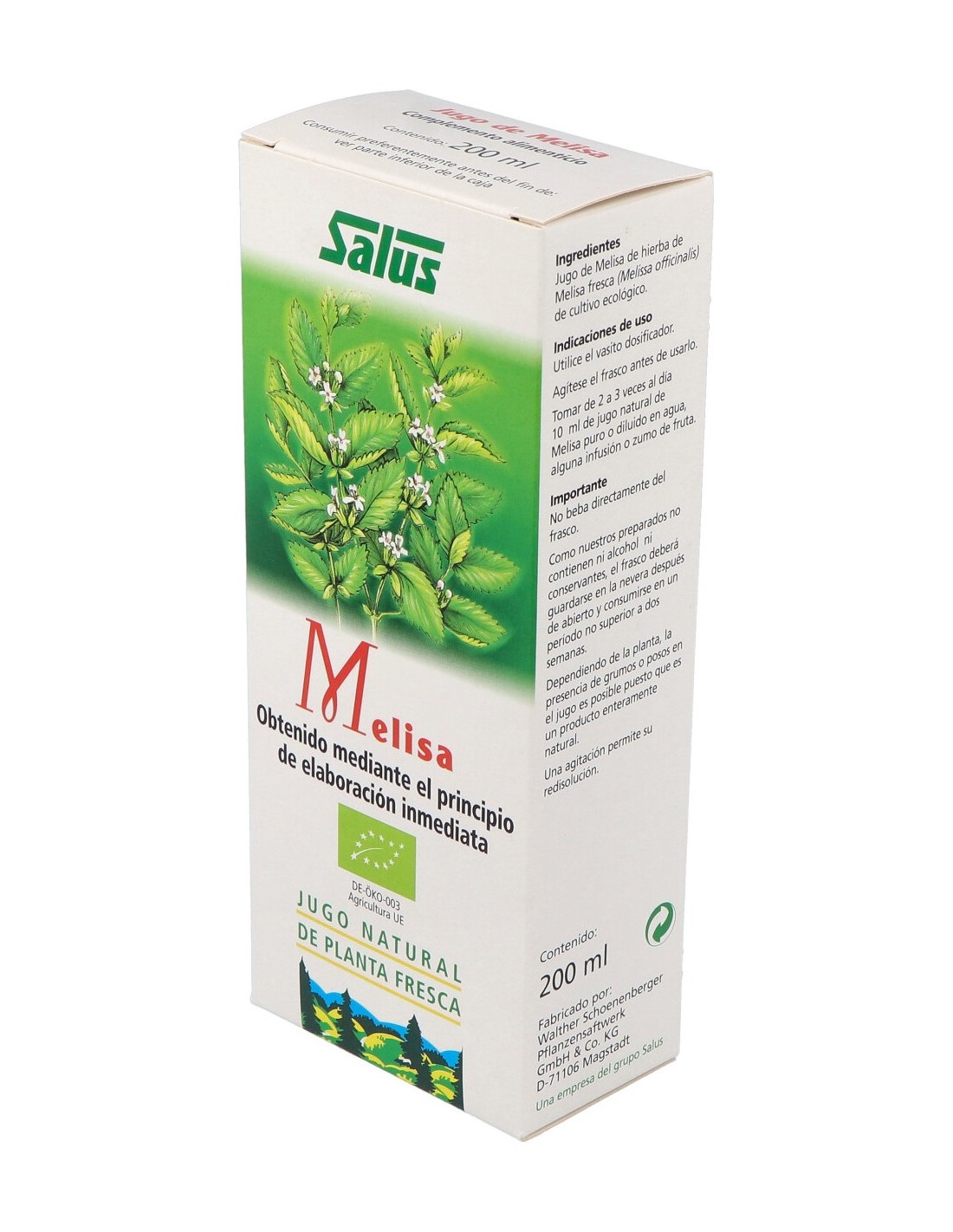 El jugo de melisa se obtiene por prensado de la planta fresca en su óptimo punto de maduración, por lo que ofrece el espectro completo de principios tal y como se encuentran en la planta fresca, sin alteración alguna. Ayuda a conciliar el sueño y a la relajación.