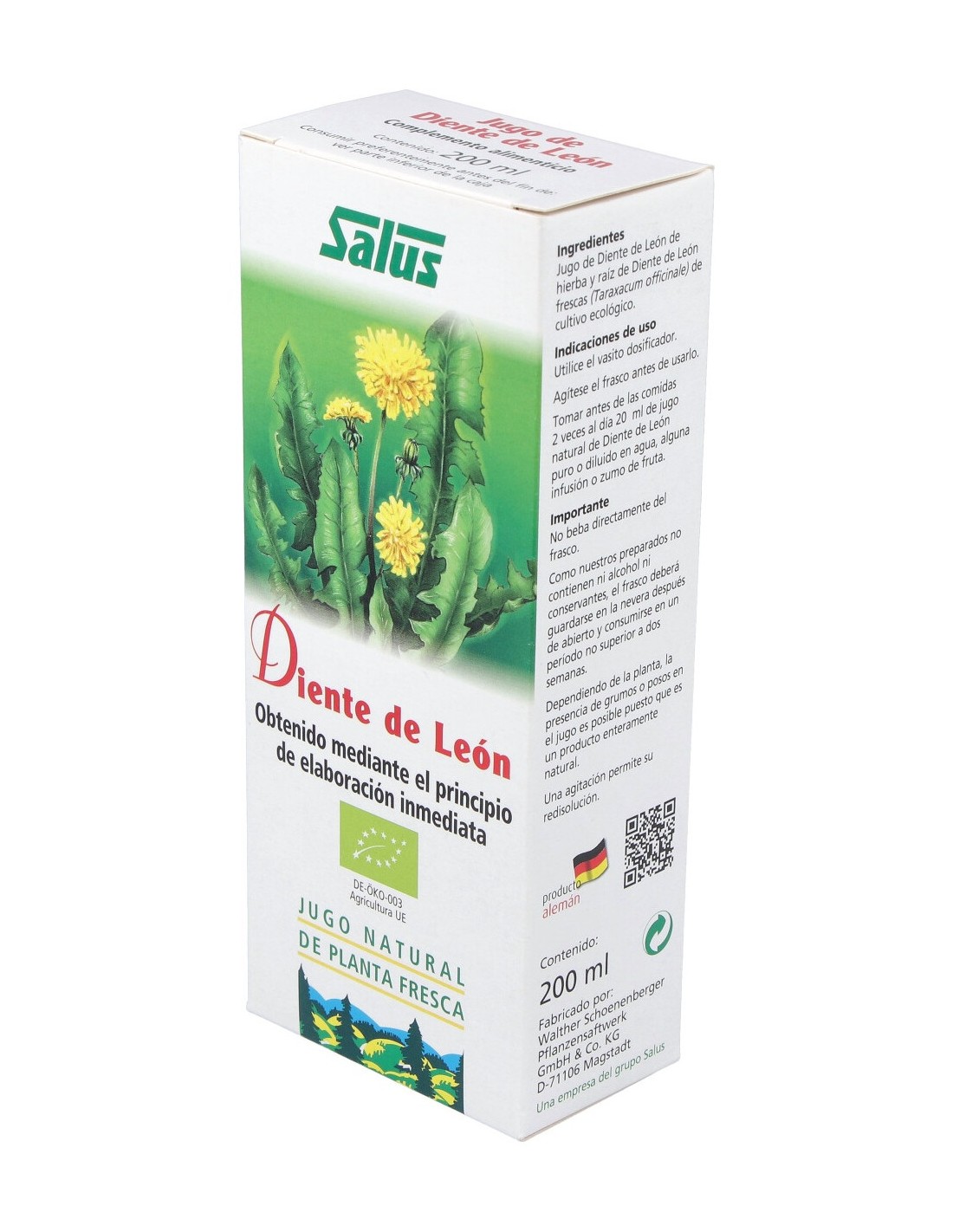 El jugo de diente de león se obtiene por prensado de la planta fresca en su óptimo punto de maduración, por lo que ofrece el espectro completo de principios tal y como se encuentran en la planta fresca, sin alteración alguna. Contribuye a la normal función del estómago y del hígado.