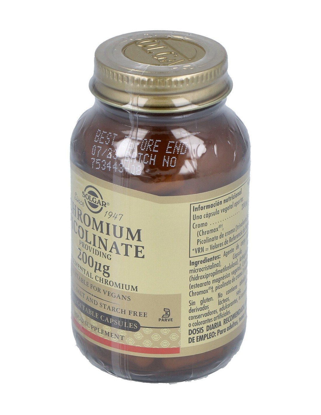 Cromo (Chromax, cromo picolinato [trivalente])..... 200 µg