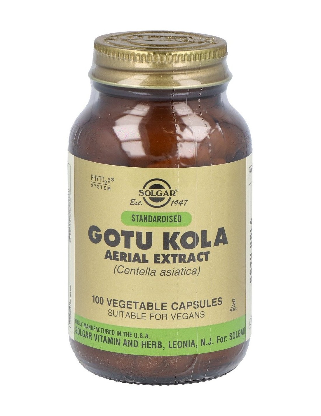 Extracto estandarizado de gotu kola (parte aérea) (6 mg de glicósidos triterpenos)...100 mg