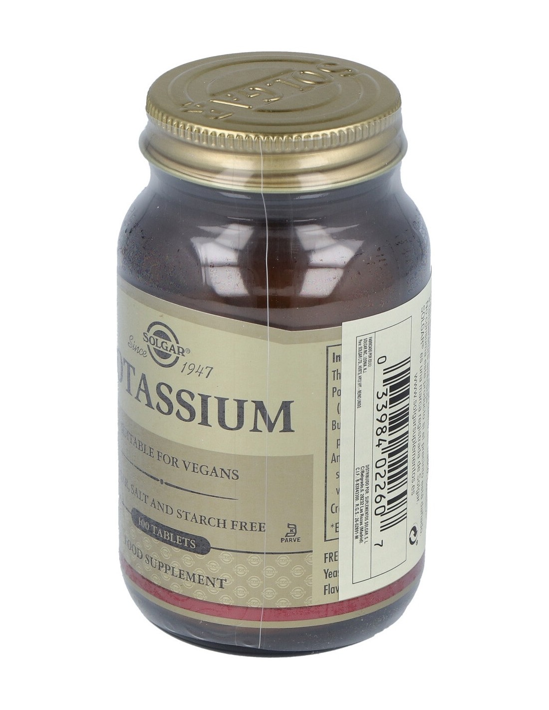 El potasio mantiene el equilibrio de los líquidos en el organismo, conduce el impulso nervioso a través de los nervios, regula el ritmo cardíaco, la presión arterial, etc. Apto para veganos.