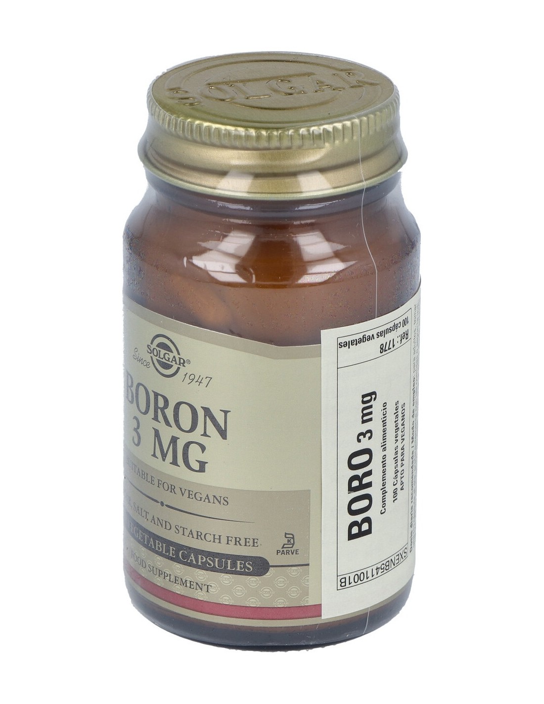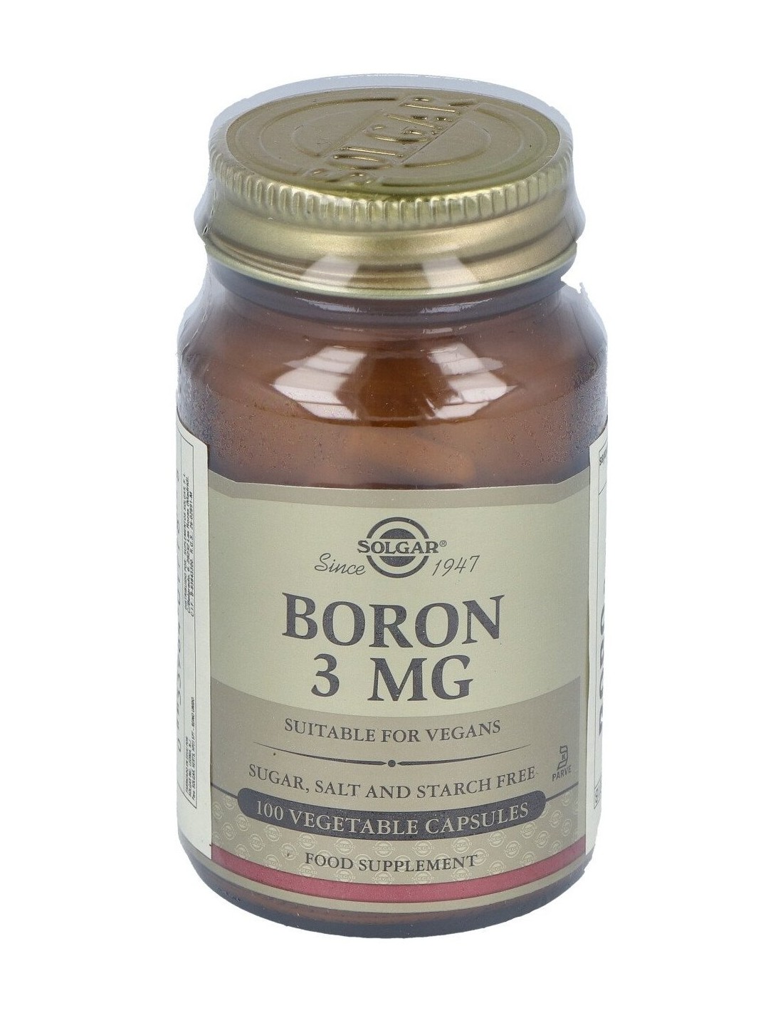 El boro colabora con el metabolismo del calcio, del fósforo y del magnesio aumentando su absorción y apoyando así el mantenimiento de los huesos en condiciones normales. Producto apto para veganos.