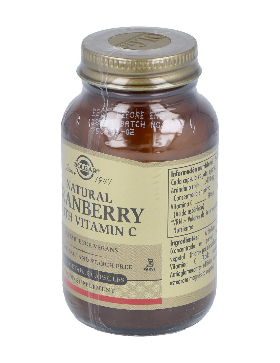 El arándano rojo contribuye al normal mantenimiento de las vías urinarias. Apto para veganos.