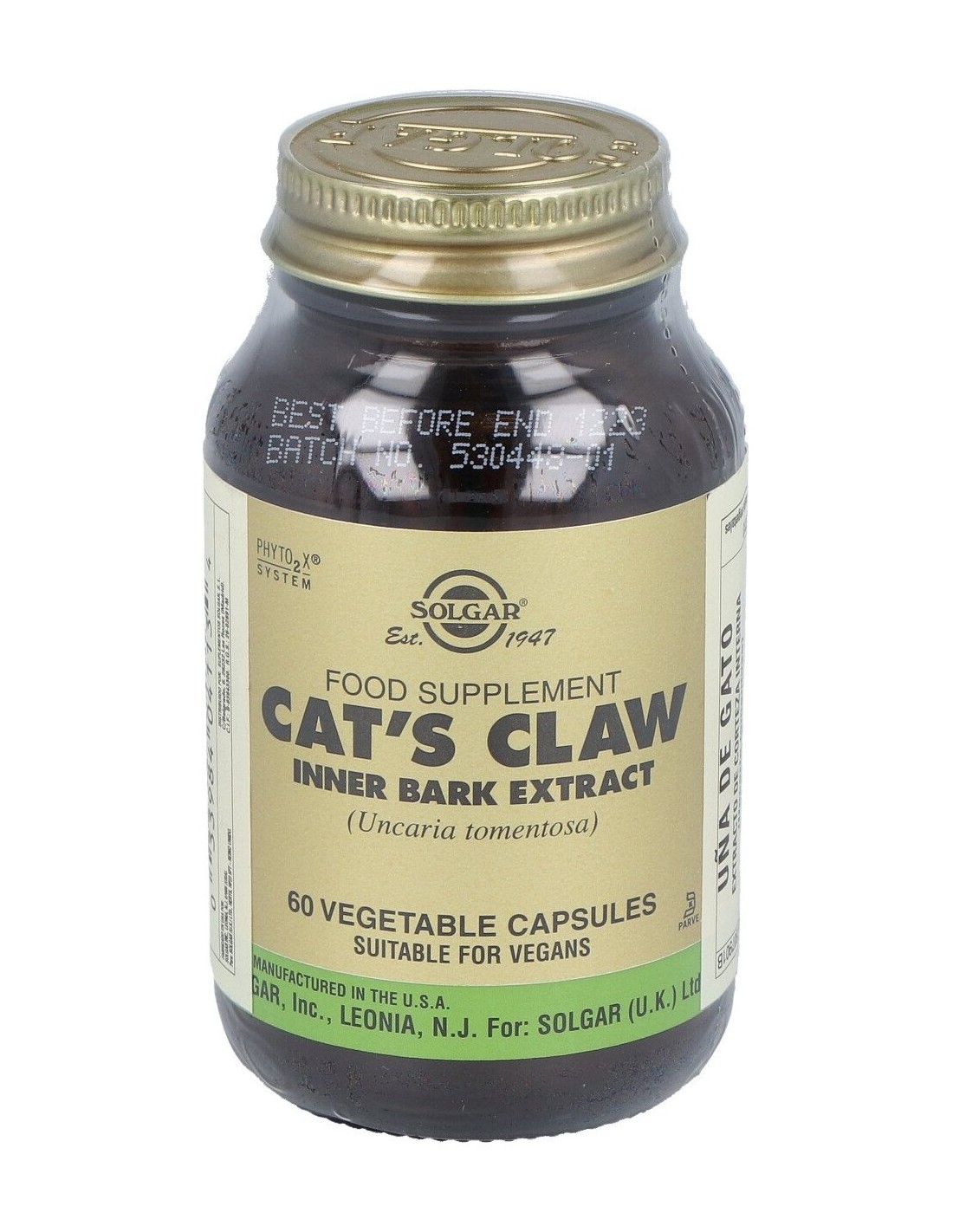 Extracto estandarizado de corteza interna de uña de gato pulverizado (22,5 mg [15%] de polifenoles, 4,5 mg [3%] alcaloides).......150 mg