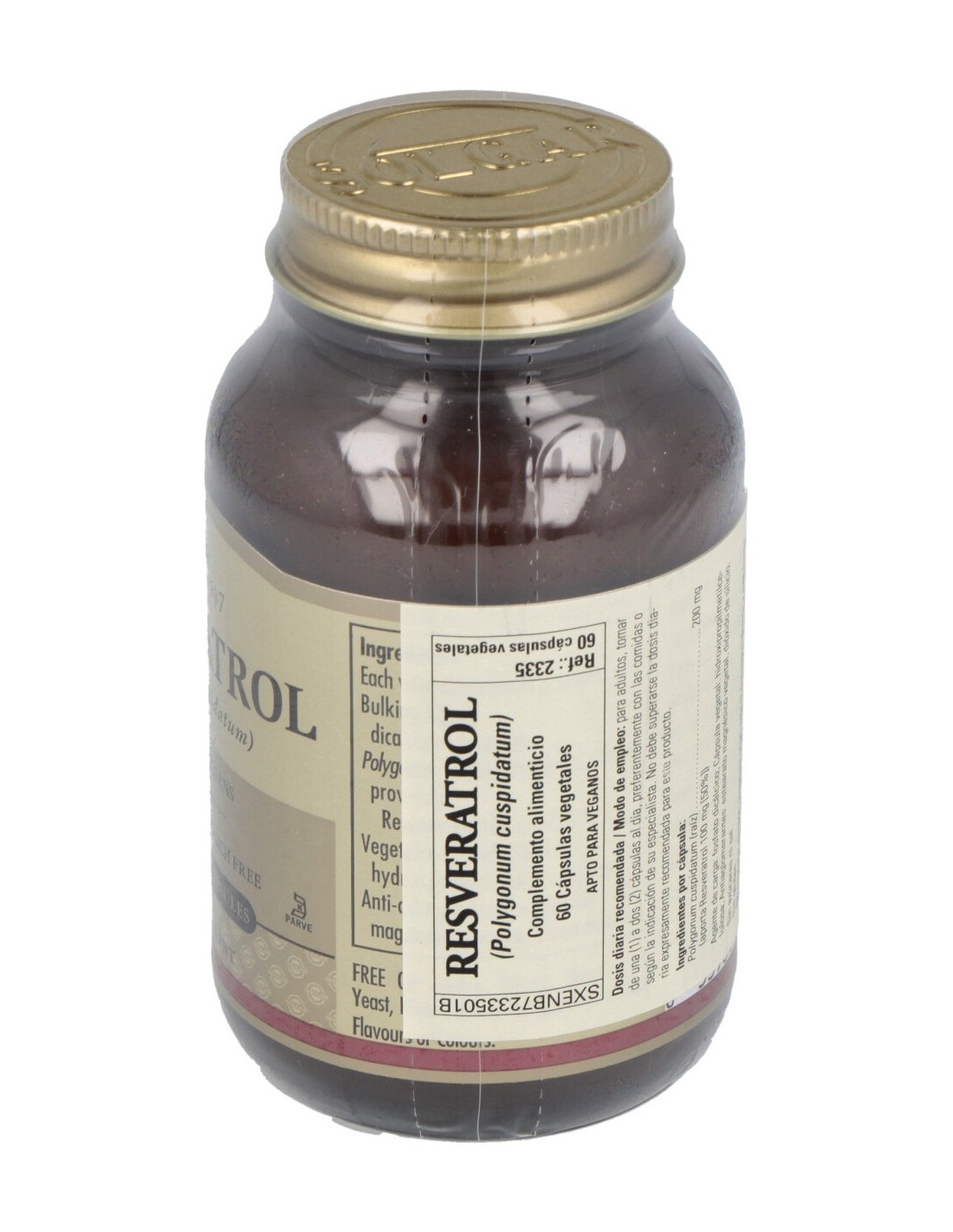 Polygonum cuspidatum (raíz) (aporta Resveratrol). Agente de carga: fosfato dicálcico: Cápsula vegetal: hidroxipropilmetilcelulosa: Antiaglomerantes: estearato magnésico vegetal, dióxido de silicio.