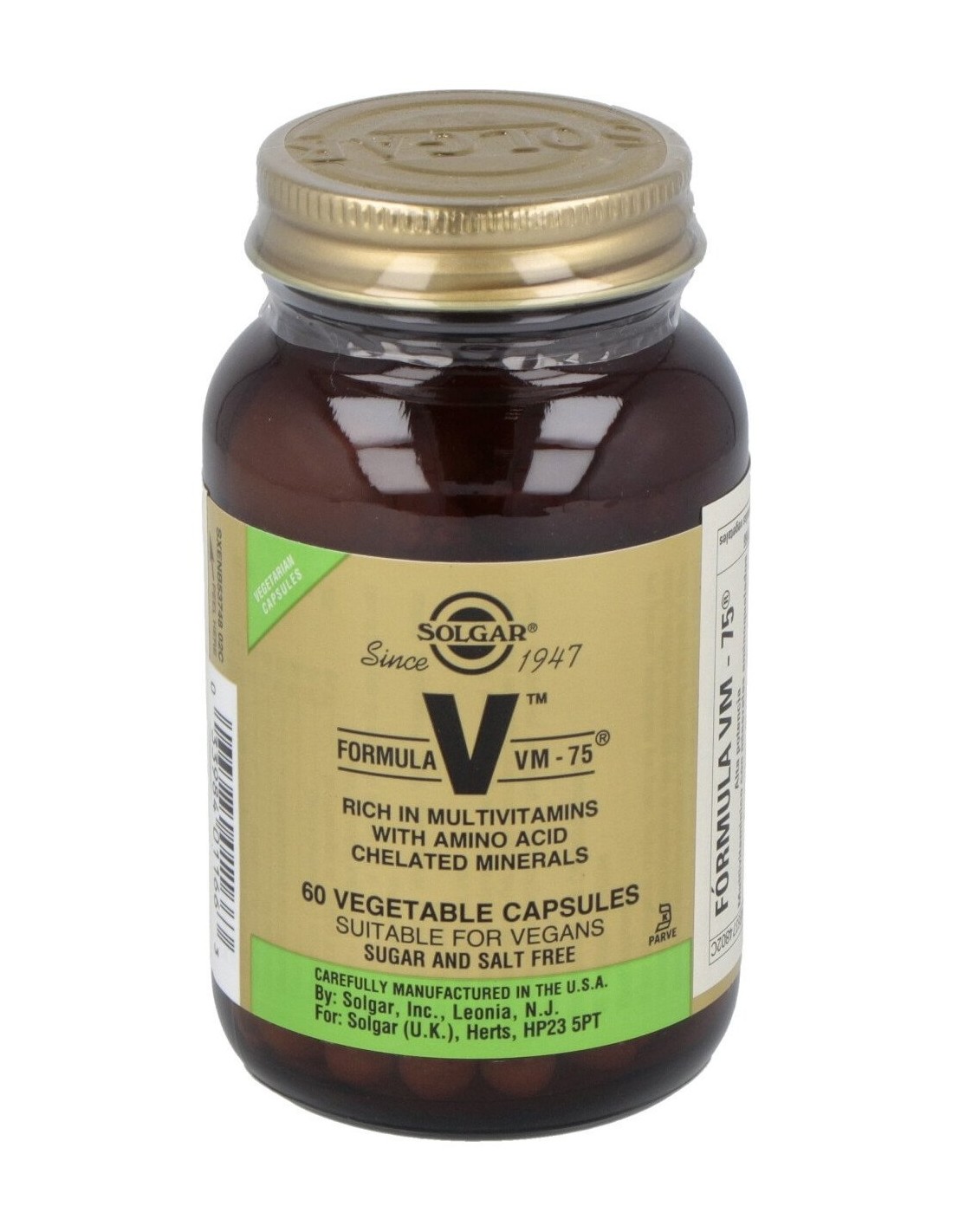 Cubierta de la cápsula vegetal: hidroxipropilmetilcelulosa: diluyentes: alginato, almidón de guisante, maltodextrina, fosfato dicálcico, manitol, ácido cítrico, etilcelulosa: antiaglomerantes: estearato de magnesio vegetal, dióxido de silicio.