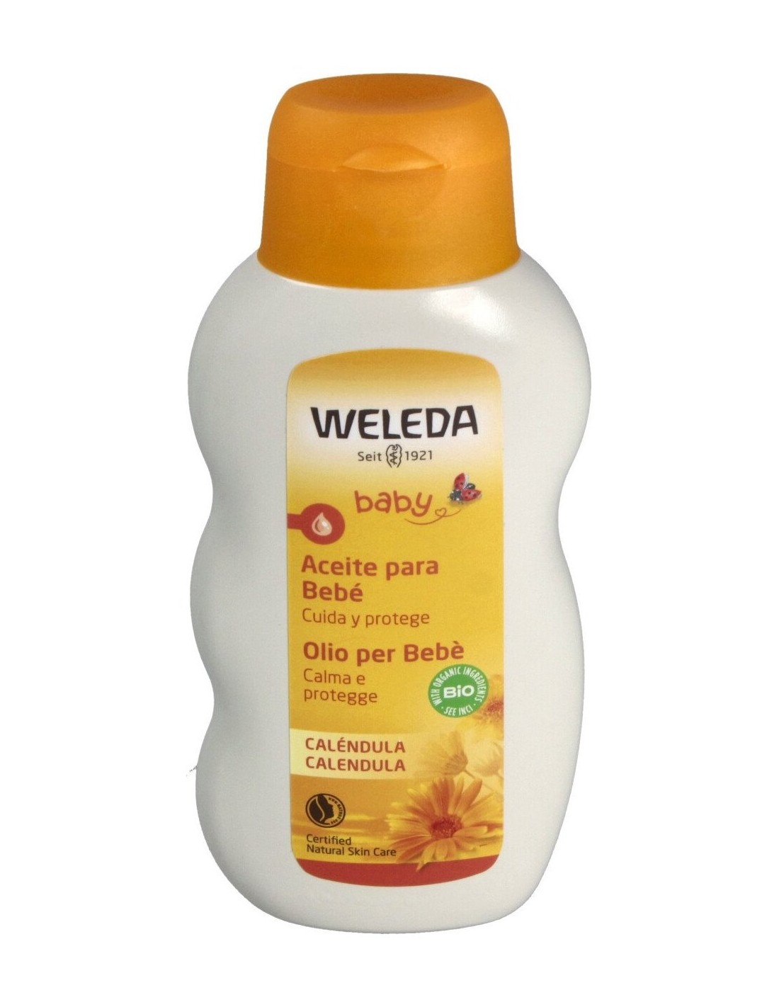 Weleda aceite calendula bebé cuida, calma y protege la piel de bebés y niños. La caléndula es conocida por sus propiedades calmantes y su capacidad para cuidar la piel sensible, lo que lo hace ideal para el cuidado de la piel de los bebés. Este aceite se utiliza para: